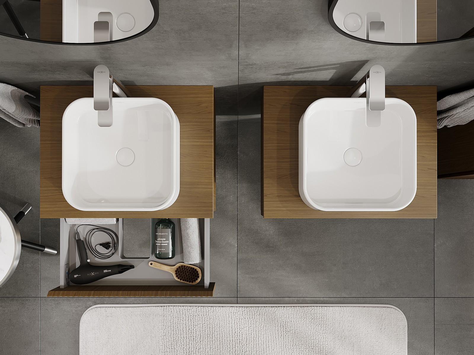 Mexen Rivel vonios spintelė po kriaukle 60 cm su stalviršiu, 1 stalčius, grioveliais, riešutas - 91A20-06023-1-BFC86