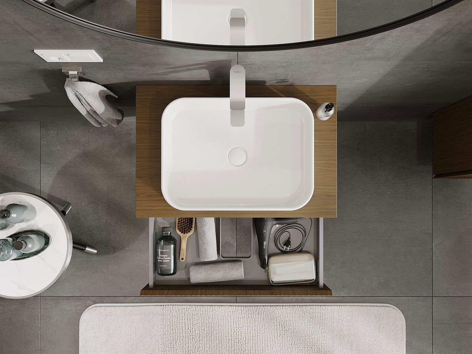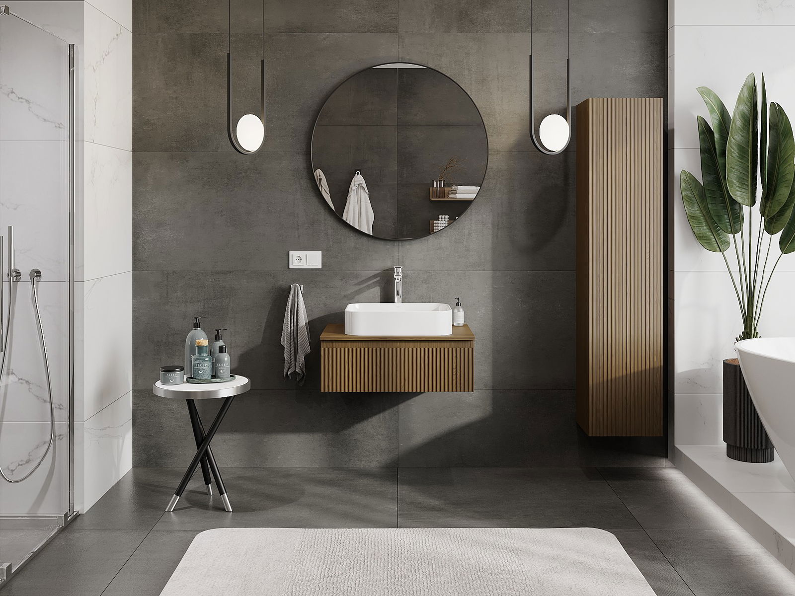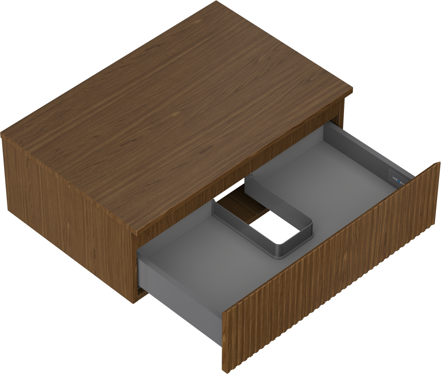Mexen Rivel vonios kambario spintelė po praustuvu 70 cm su stalviršiu, 1 stalčius, rifliuotas, riešutas