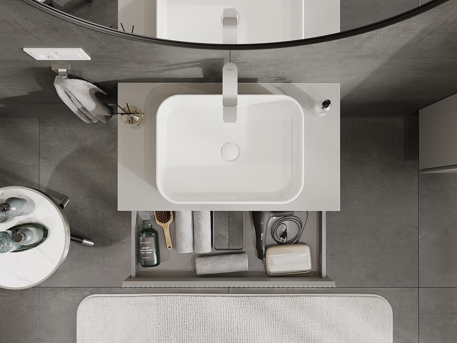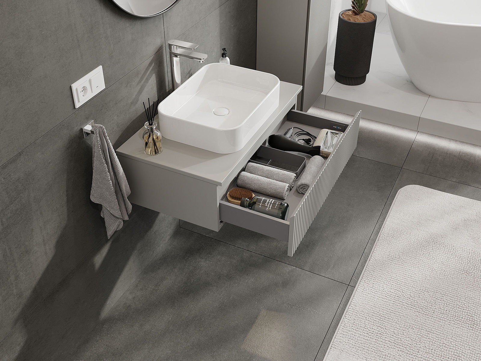 Mūsų moduliniai vonios baldai gali būti derinami tarpusavyje įvairiomis spalvų konfigūracijomis, leidžiant visiškai pritaikyti pagal asmeninius poreikius. Galima pasirinkti tiek atskirų elementų išvaizdą, tiek funkcijas, kas leidžia baldus pritaikyti pagal savo stiliaus ir naudojimo preferencijas.