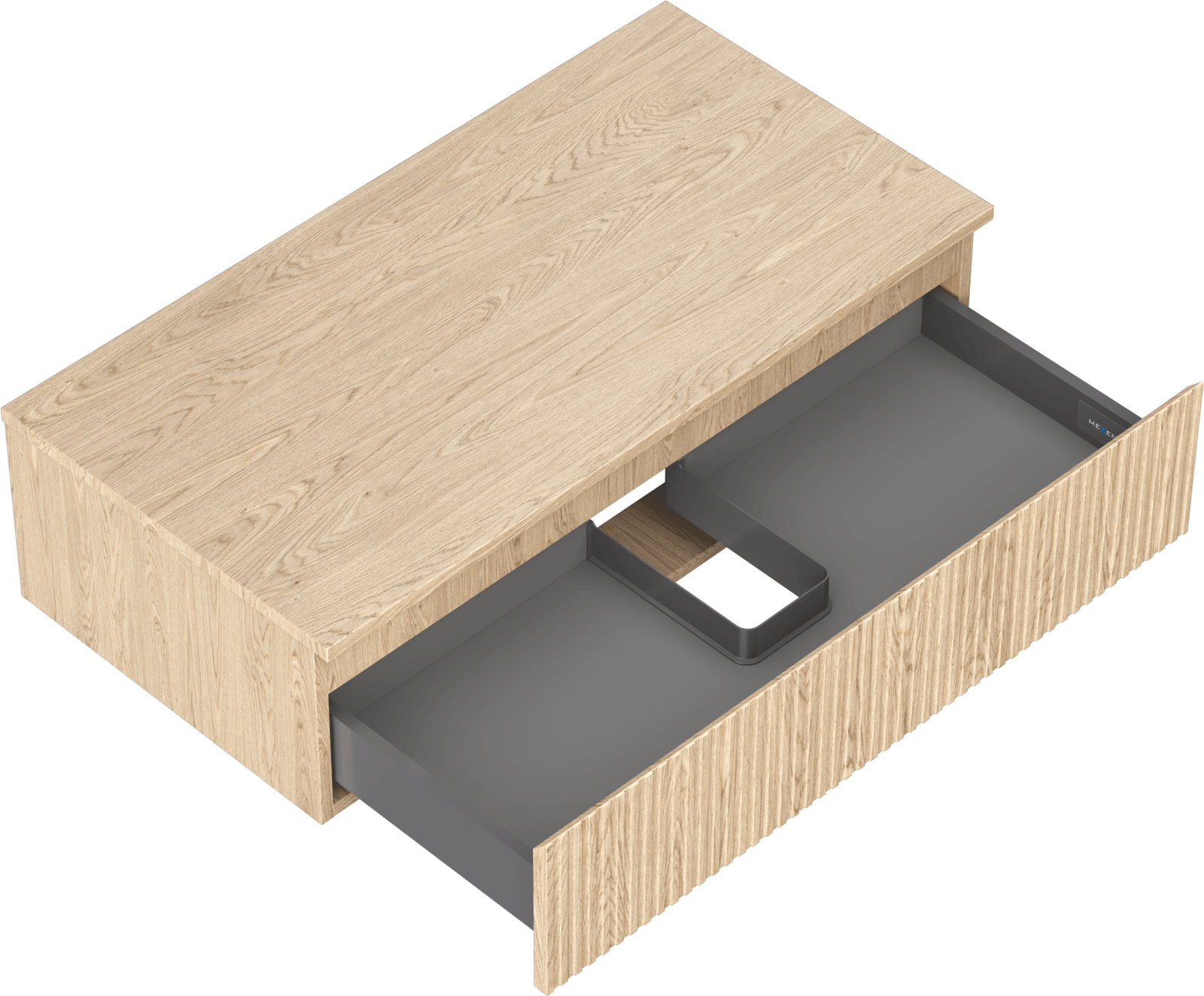 Iškirpimas stalčiuje yra suprojektuotas taip, kad tilptų sifonas, kuris yra būtinas kriauklės įrenginiuose. Dėl to baldas gali būti pilnai funkcionaliai sumontuotas, nereikalaujant atsisakyti vietos stalčiuje dėl įrenginio.