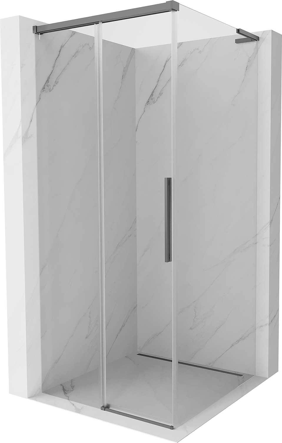 Mexen Rox L stumetrinis dušo kabinas su slankiojančiomis durimis, skaidrus, juodas metalas - 8C2L-100-100-95-00