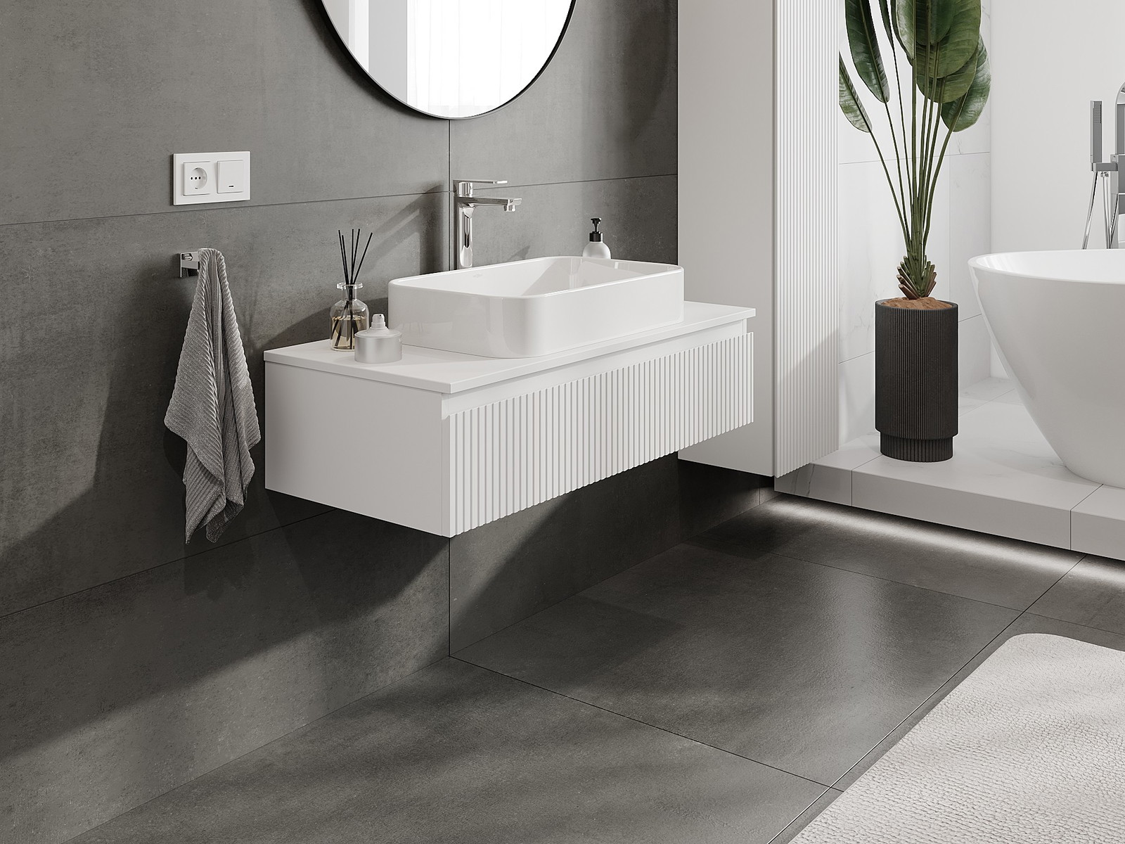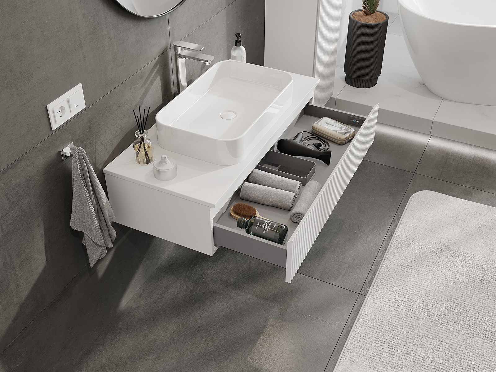 Mūsų moduliniai vonios baldai gali būti derinami tarpusavyje įvairiomis spalvų konfigūracijomis, leidžiant visiškai pritaikyti pagal asmeninius poreikius. Galima pasirinkti tiek atskirų elementų išvaizdą, tiek funkcijas, kas leidžia baldus pritaikyti pagal savo stiliaus ir naudojimo preferencijas.