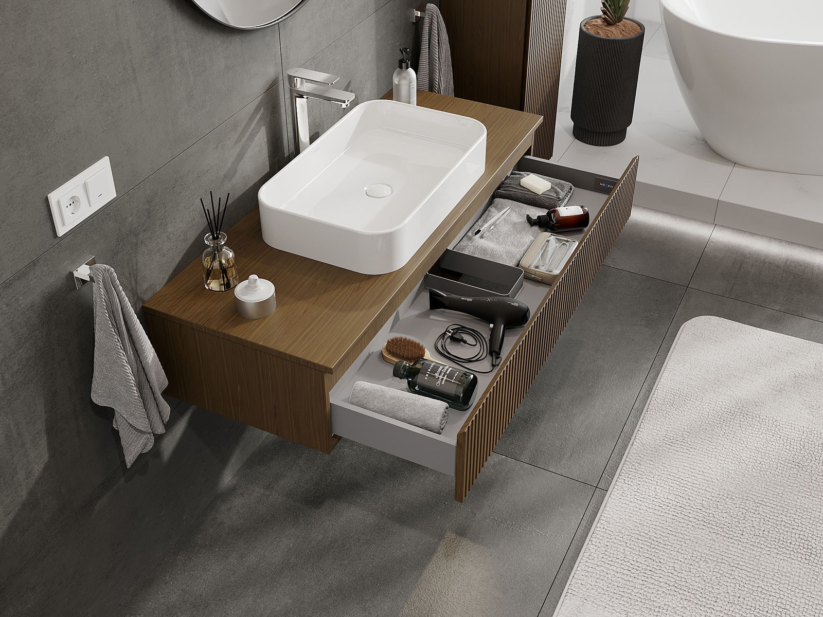 Dėl tvirtų medžiagų, preciziško atlikimo ir šiuolaikinių technologinių sprendimų, produktas užtikrina patogų naudojimą, atsparumą drėgmei ir temperatūros pokyčiams, taip pat elegantišką išvaizdą, kuri tinka įvairiems vonios kambario stiliams.