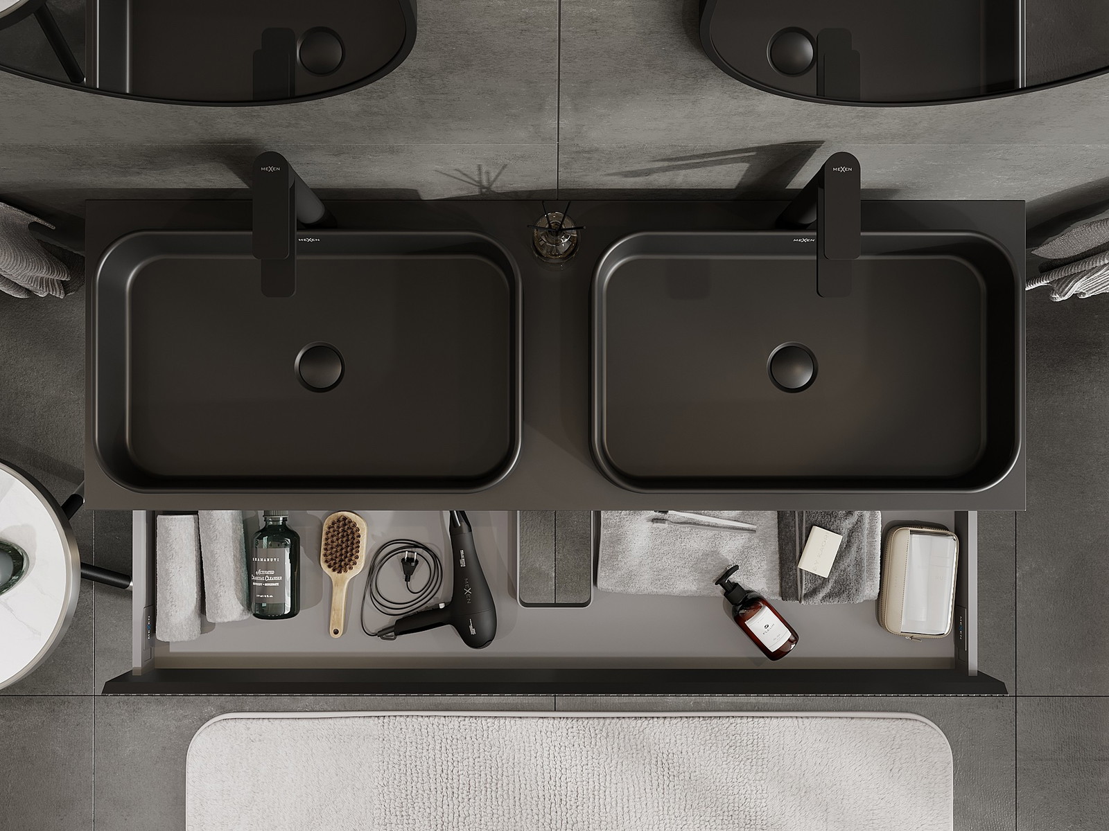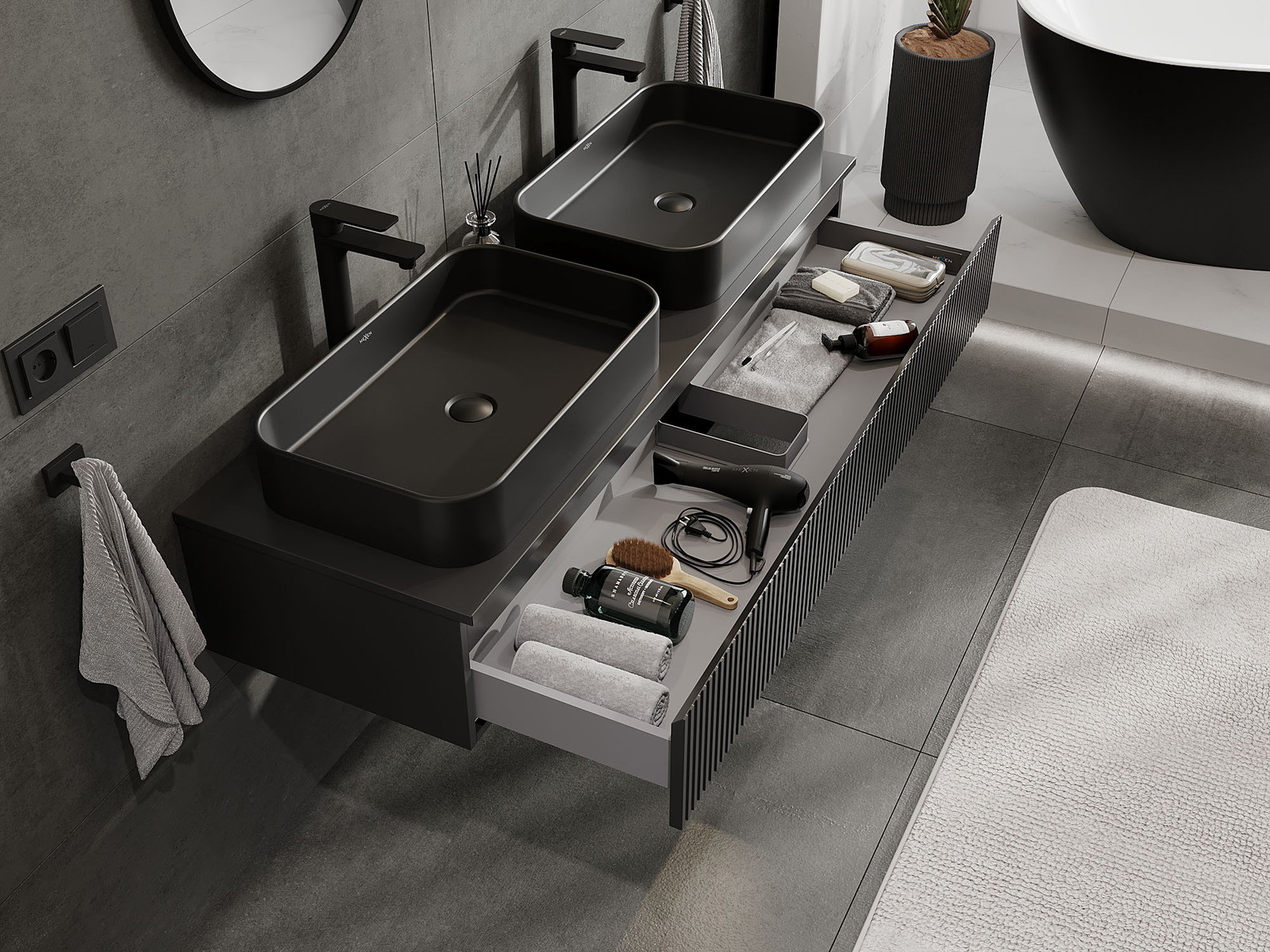 Mūsų moduliniai vonios baldai gali būti derinami tarpusavyje įvairiomis spalvų konfigūracijomis, leidžiant visiškai pritaikyti pagal asmeninius poreikius. Galima pasirinkti tiek atskirų elementų išvaizdą, tiek funkcijas, kas leidžia baldus pritaikyti pagal savo stiliaus ir naudojimo preferencijas.