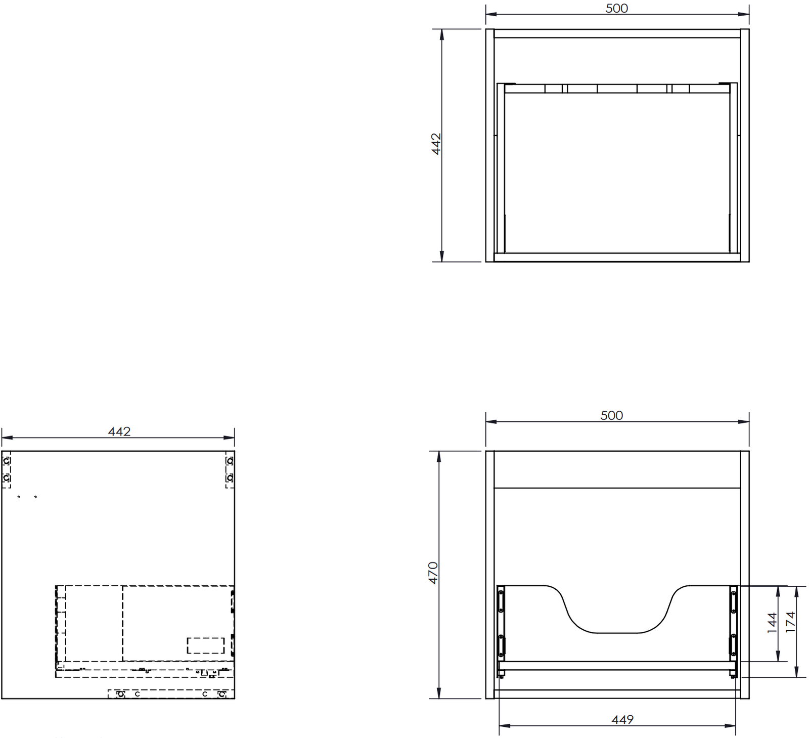 Iškirpimas stalčiuje yra suprojektuotas taip, kad tilptų sifonas, kuris yra būtinas kriauklės įrenginiuose. Dėl to baldas gali būti pilnai funkcionaliai sumontuotas, nereikalaujant atsisakyti vietos stalčiuje dėl įrenginio.