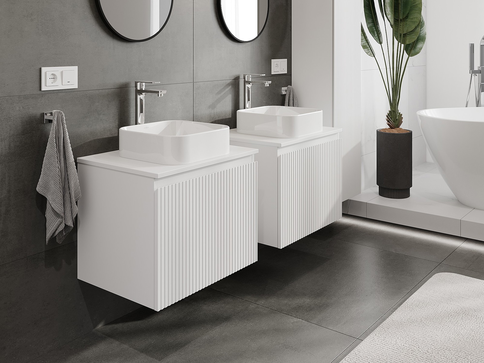 Mexen Rivel vonios spintelė po kriaukle 60 cm su stalviršiu, 1 stalčius, rifliuota, matinė balta - 91A20-06047-1-BFC01