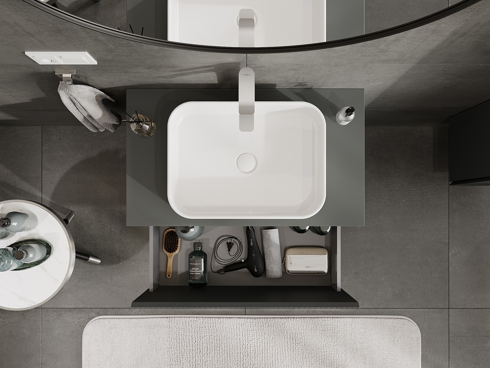 Mūsų moduliniai vonios baldai gali būti derinami tarpusavyje įvairiomis spalvų konfigūracijomis, leidžiant visiškai pritaikyti pagal asmeninius poreikius. Galima pasirinkti tiek atskirų elementų išvaizdą, tiek funkcijas, kas leidžia baldus pritaikyti pagal savo stiliaus ir naudojimo preferencijas.