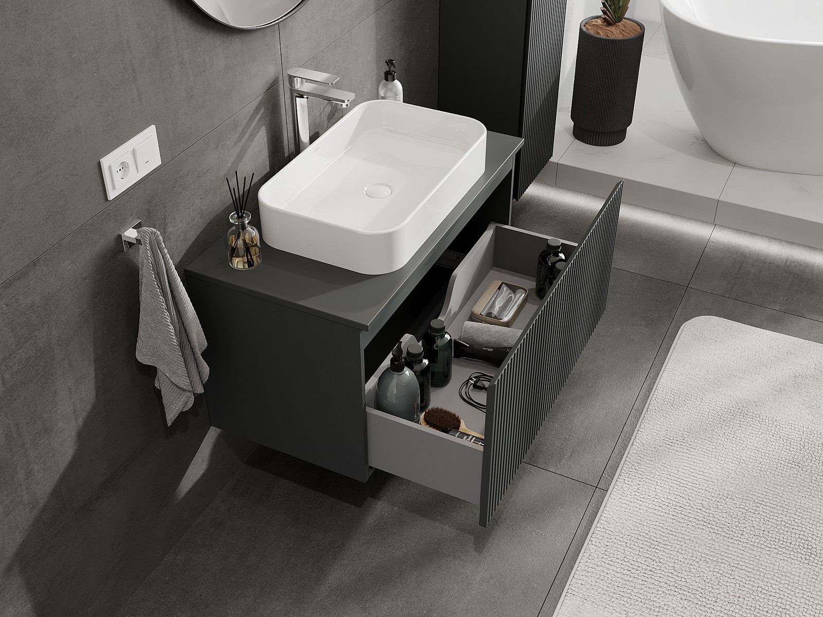 Mūsų moduliniai vonios baldai gali būti derinami tarpusavyje įvairiomis spalvų konfigūracijomis, leidžiant visiškai pritaikyti pagal asmeninius poreikius. Galima pasirinkti tiek atskirų elementų išvaizdą, tiek funkcijas, kas leidžia baldus pritaikyti pagal savo stiliaus ir naudojimo preferencijas.