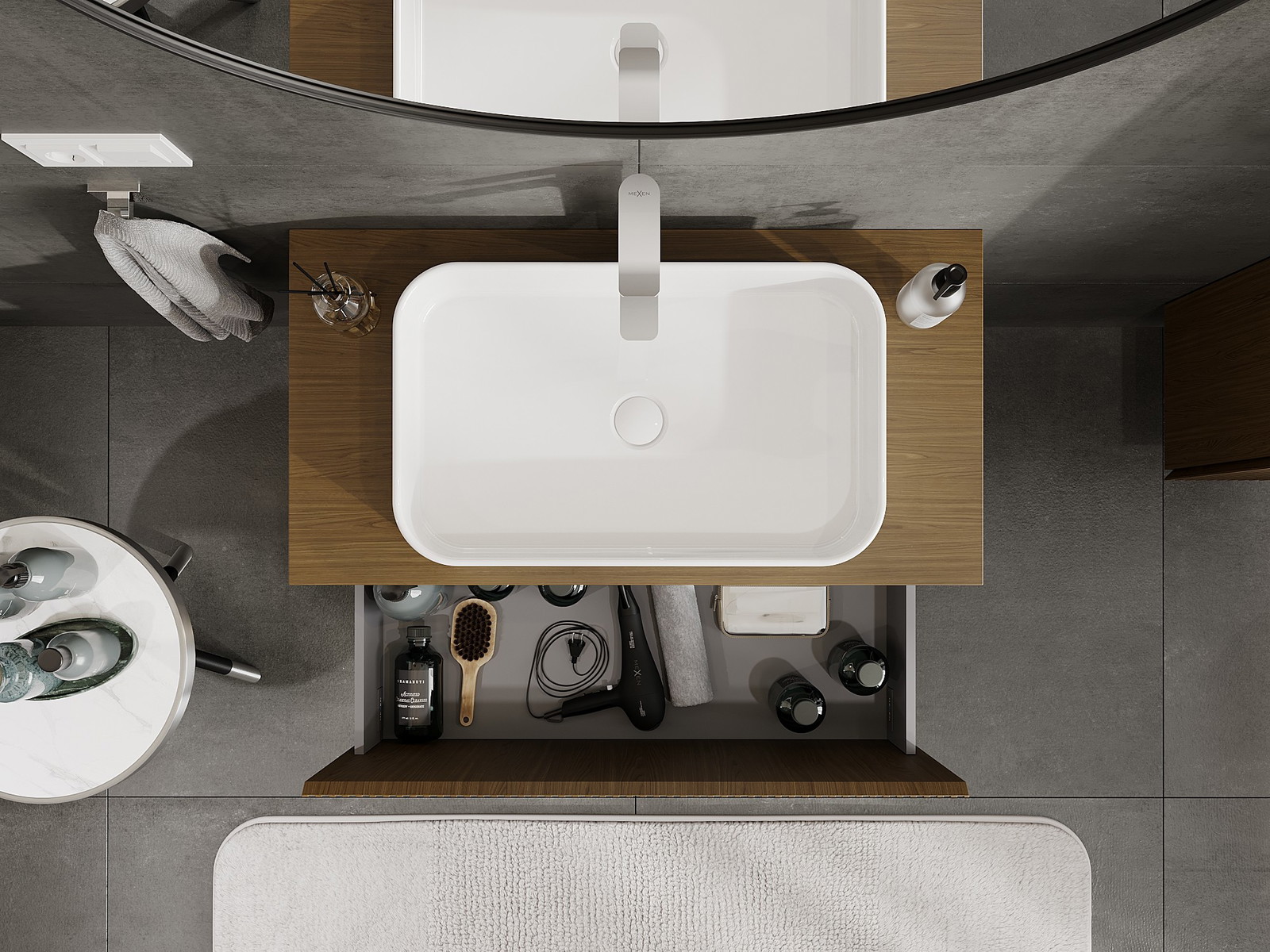 Mūsų moduliniai vonios baldai gali būti derinami tarpusavyje įvairiomis spalvų konfigūracijomis, leidžiant visiškai pritaikyti pagal asmeninius poreikius. Galima pasirinkti tiek atskirų elementų išvaizdą, tiek funkcijas, kas leidžia baldus pritaikyti pagal savo stiliaus ir naudojimo preferencijas.