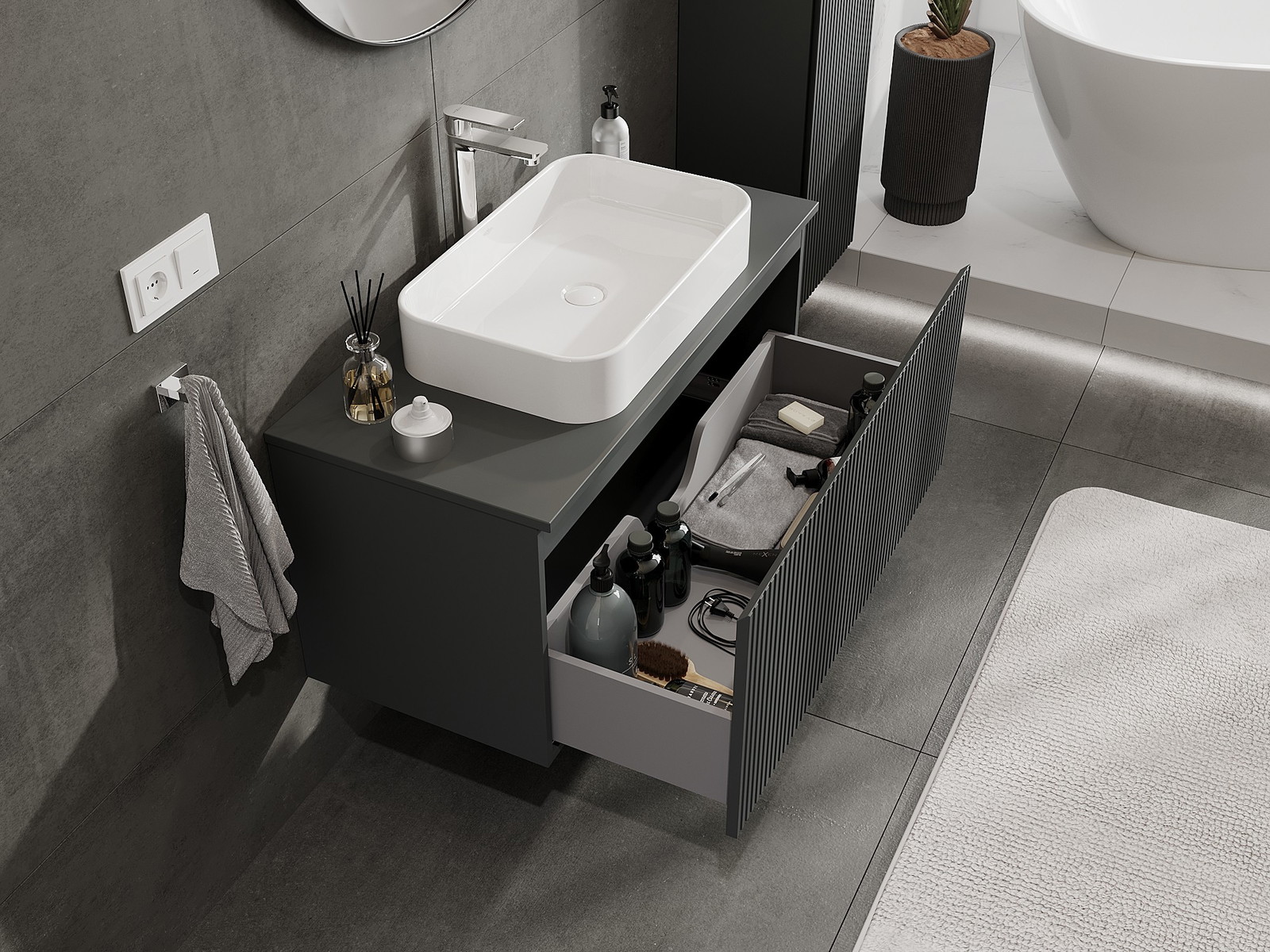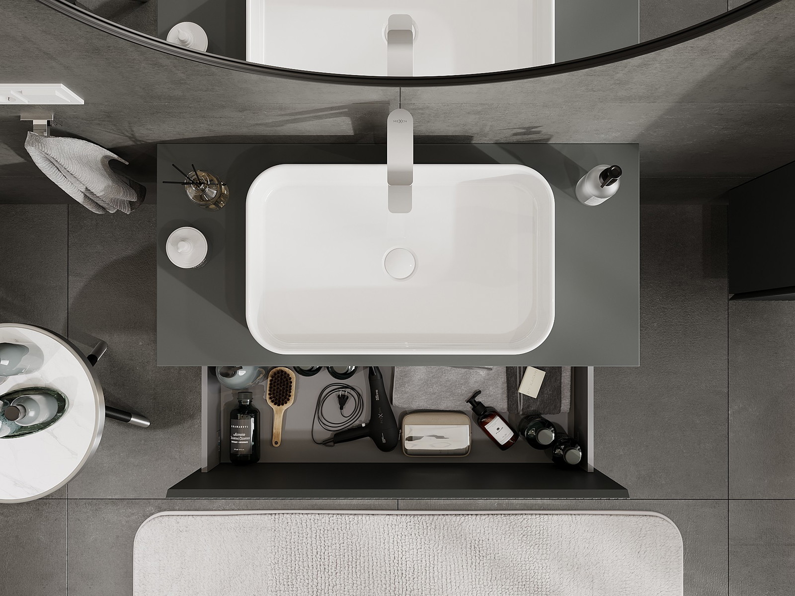 Mūsų moduliniai vonios baldai gali būti derinami tarpusavyje įvairiomis spalvų konfigūracijomis, leidžiant visiškai pritaikyti pagal asmeninius poreikius. Galima pasirinkti tiek atskirų elementų išvaizdą, tiek funkcijas, kas leidžia baldus pritaikyti pagal savo stiliaus ir naudojimo preferencijas.