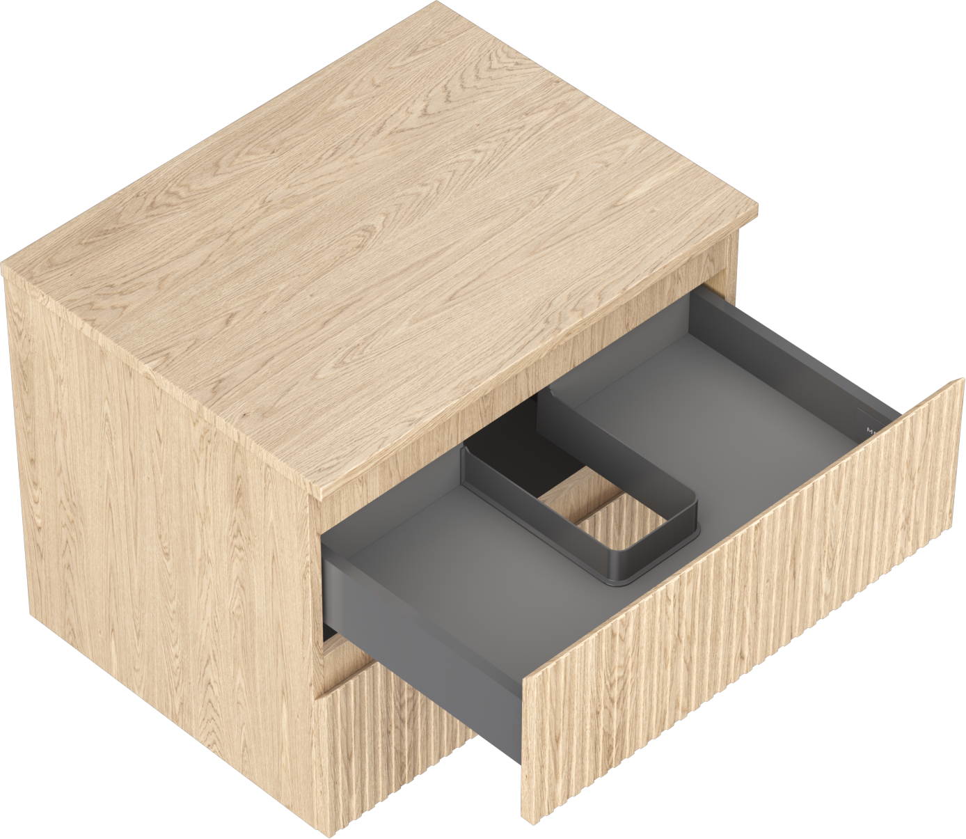 Iškirpimas stalčiuje yra suprojektuotas taip, kad tilptų sifonas, kuris yra būtinas kriauklės įrenginiuose. Dėl to baldas gali būti pilnai funkcionaliai sumontuotas, nereikalaujant atsisakyti vietos stalčiuje dėl įrenginio.