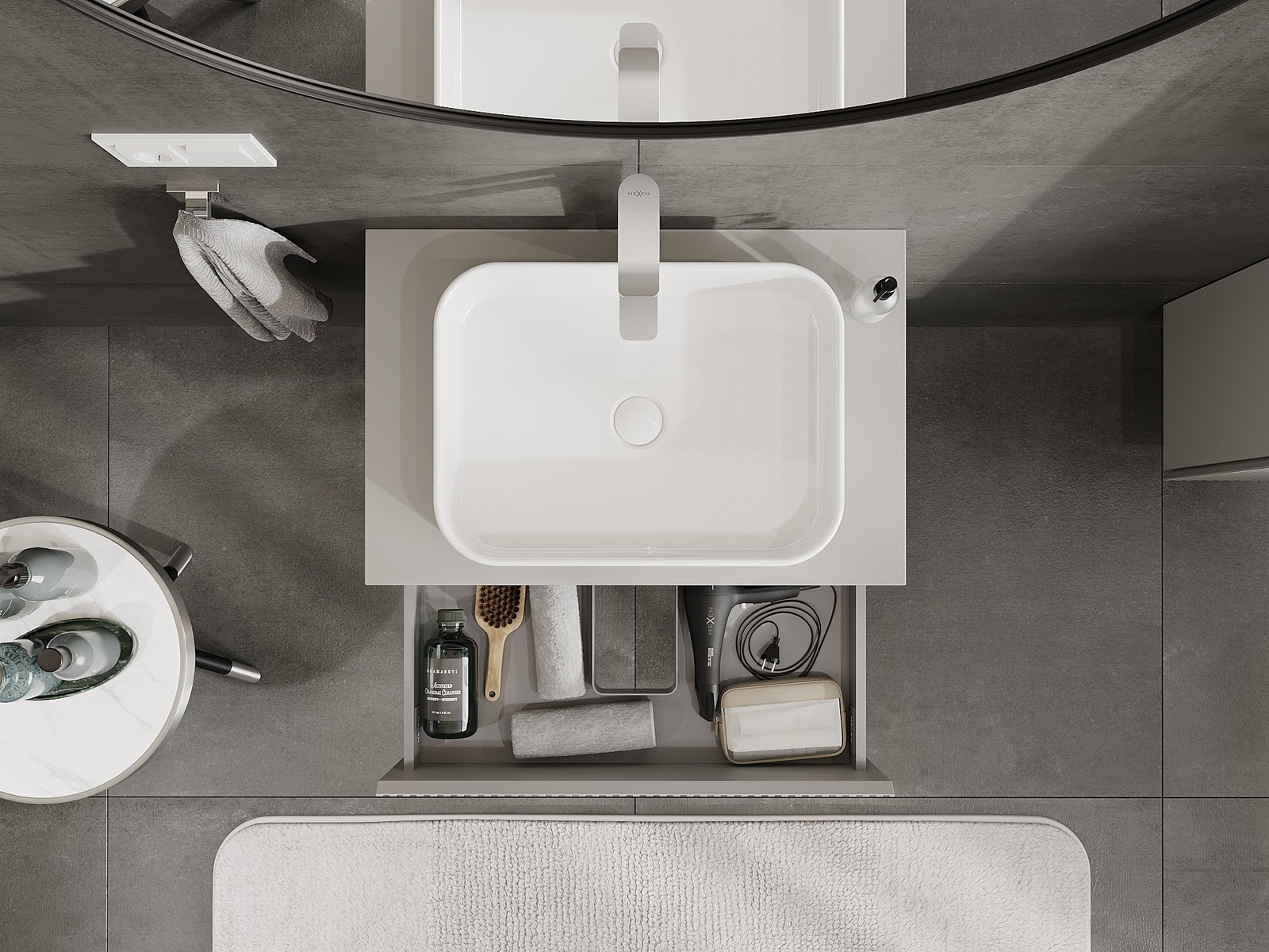 Mūsų moduliniai vonios baldai gali būti derinami tarpusavyje įvairiomis spalvų konfigūracijomis, leidžiant visiškai pritaikyti pagal asmeninius poreikius. Galima pasirinkti tiek atskirų elementų išvaizdą, tiek funkcijas, kas leidžia baldus pritaikyti pagal savo stiliaus ir naudojimo preferencijas.