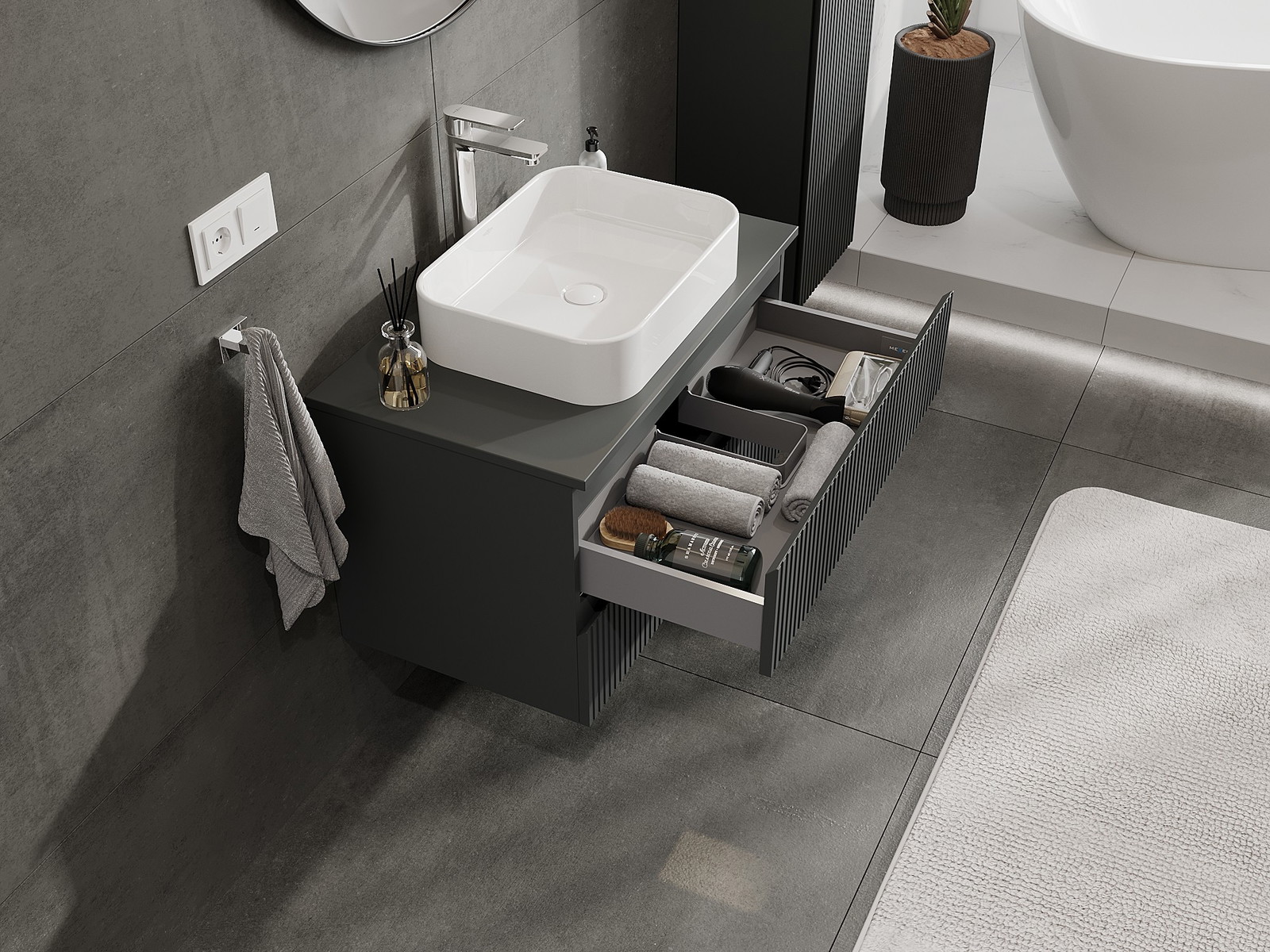Mūsų moduliniai vonios baldai gali būti derinami tarpusavyje įvairiomis spalvų konfigūracijomis, leidžiant visiškai pritaikyti pagal asmeninius poreikius. Galima pasirinkti tiek atskirų elementų išvaizdą, tiek funkcijas, kas leidžia baldus pritaikyti pagal savo stiliaus ir naudojimo preferencijas.