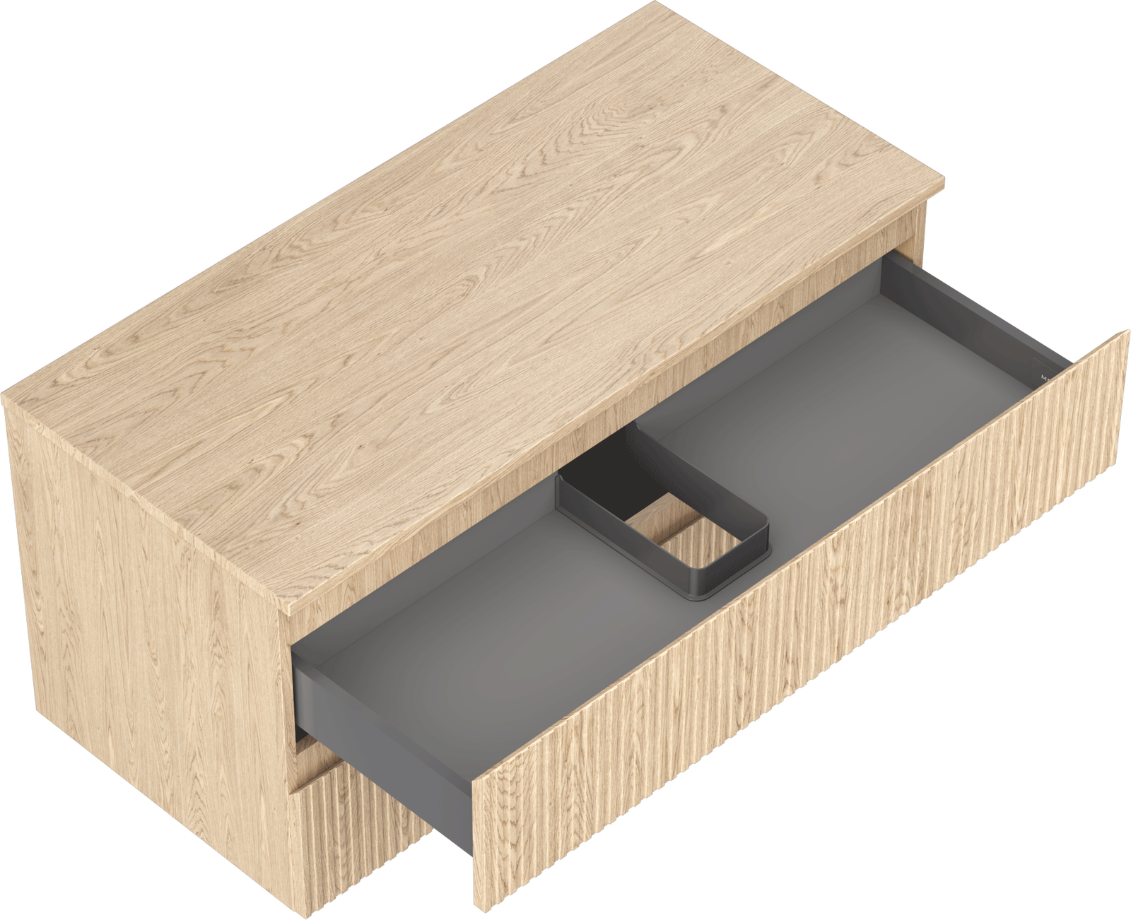 Iškirpimas stalčiuje yra suprojektuotas taip, kad tilptų sifonas, kuris yra būtinas kriauklės įrenginiuose. Dėl to baldas gali būti pilnai funkcionaliai sumontuotas, nereikalaujant atsisakyti vietos stalčiuje dėl įrenginio.