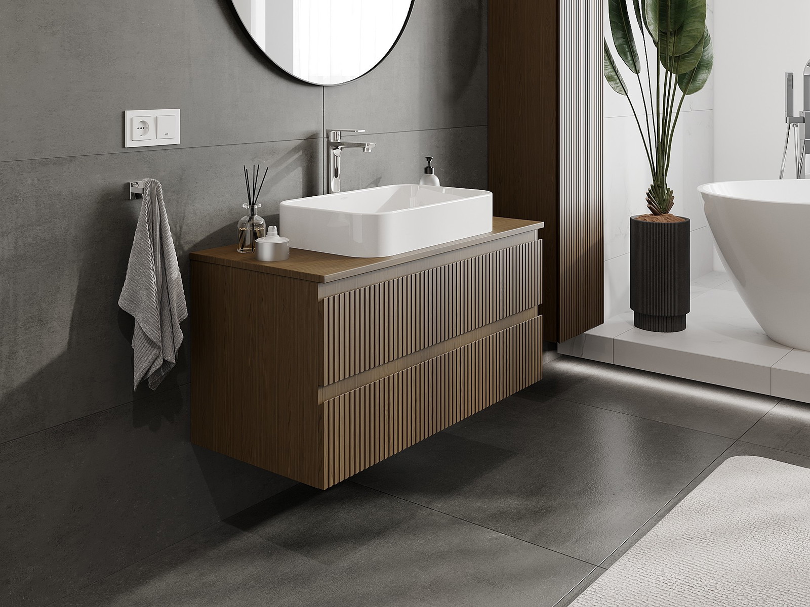 Mūsų moduliniai vonios baldai gali būti derinami tarpusavyje įvairiomis spalvų konfigūracijomis, leidžiant visiškai pritaikyti pagal asmeninius poreikius. Galima pasirinkti tiek atskirų elementų išvaizdą, tiek funkcijas, kas leidžia baldus pritaikyti pagal savo stiliaus ir naudojimo preferencijas.
