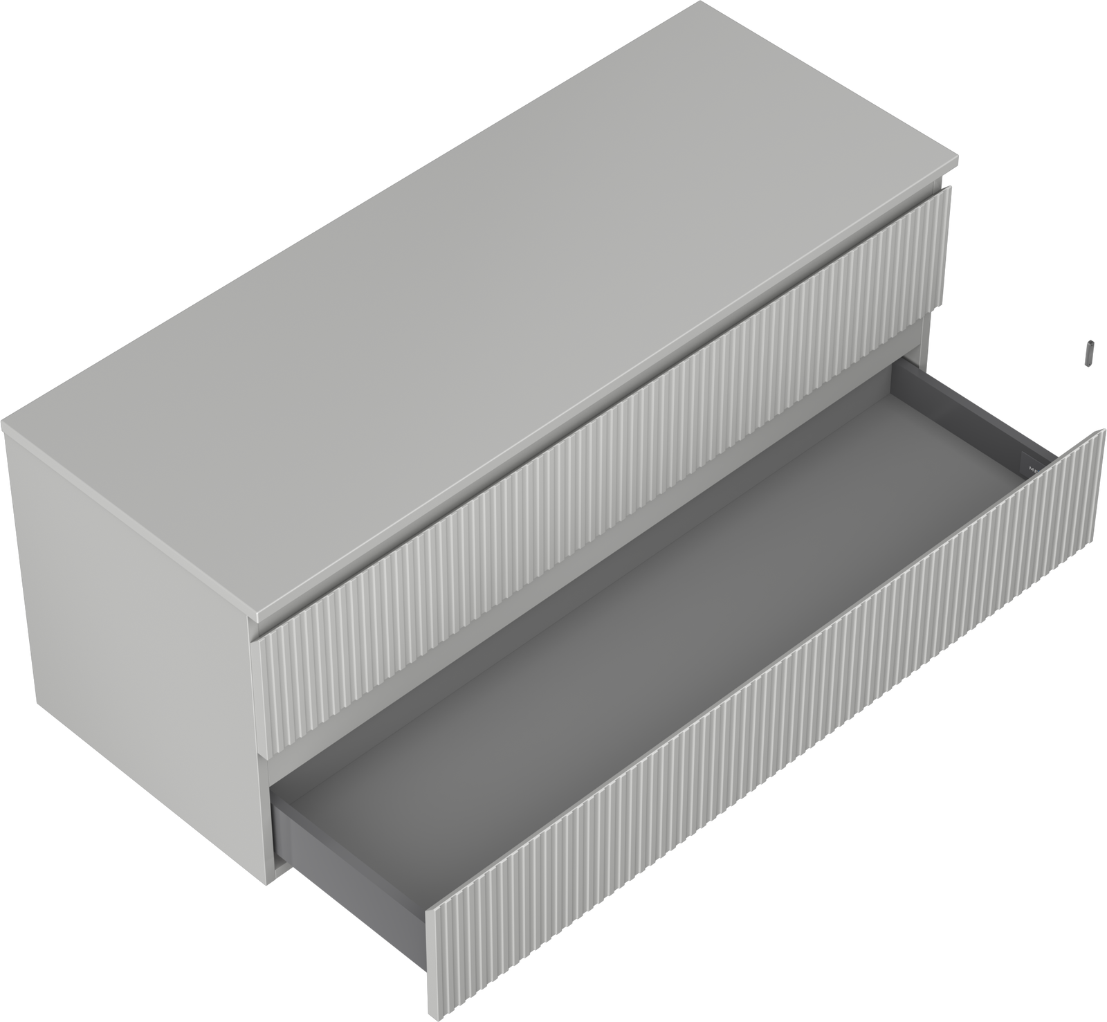 Mexen Rivel vonios spintelė po kriaukle 120 cm su stalviršiu, 2 stalčiai, rifliuota, pilka matinė - 91A20-12047-2-BFFC62