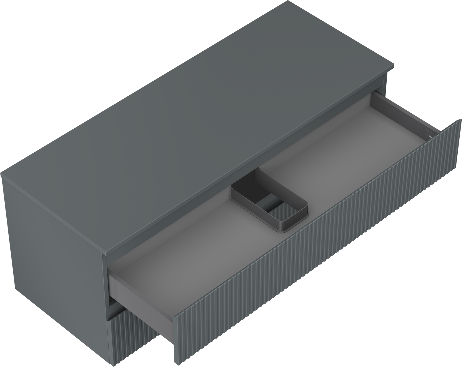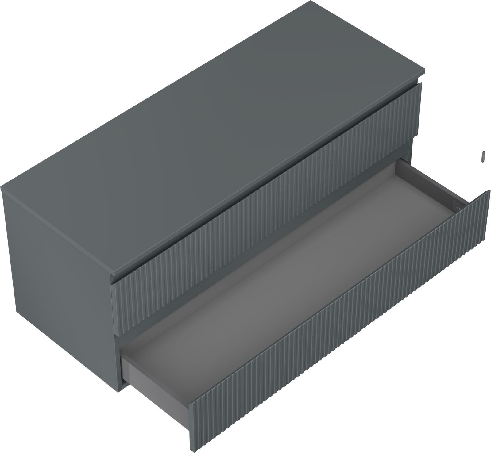 Mexen Rivel vonios kambario spintelė po kriaukle 120 cm su stalviršiu, 2 stalčiai, rifliuota, matinė grafito spalva