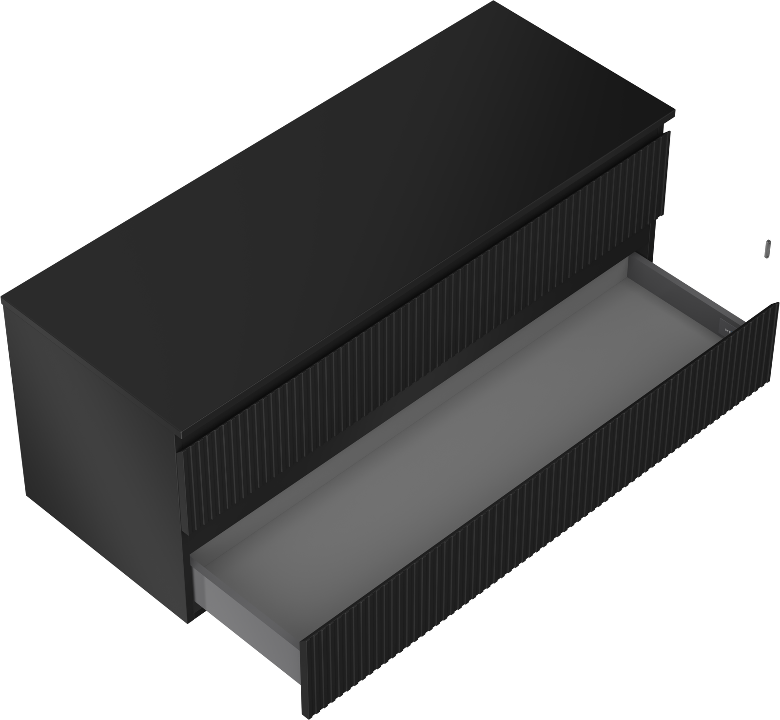 Mexen Rivel vonios spintelė po praustuvu 120 cm su stalviršiu, 2 stalčiai, grioveliuota, juoda matinė - 91A20-12047-2-BFFC71