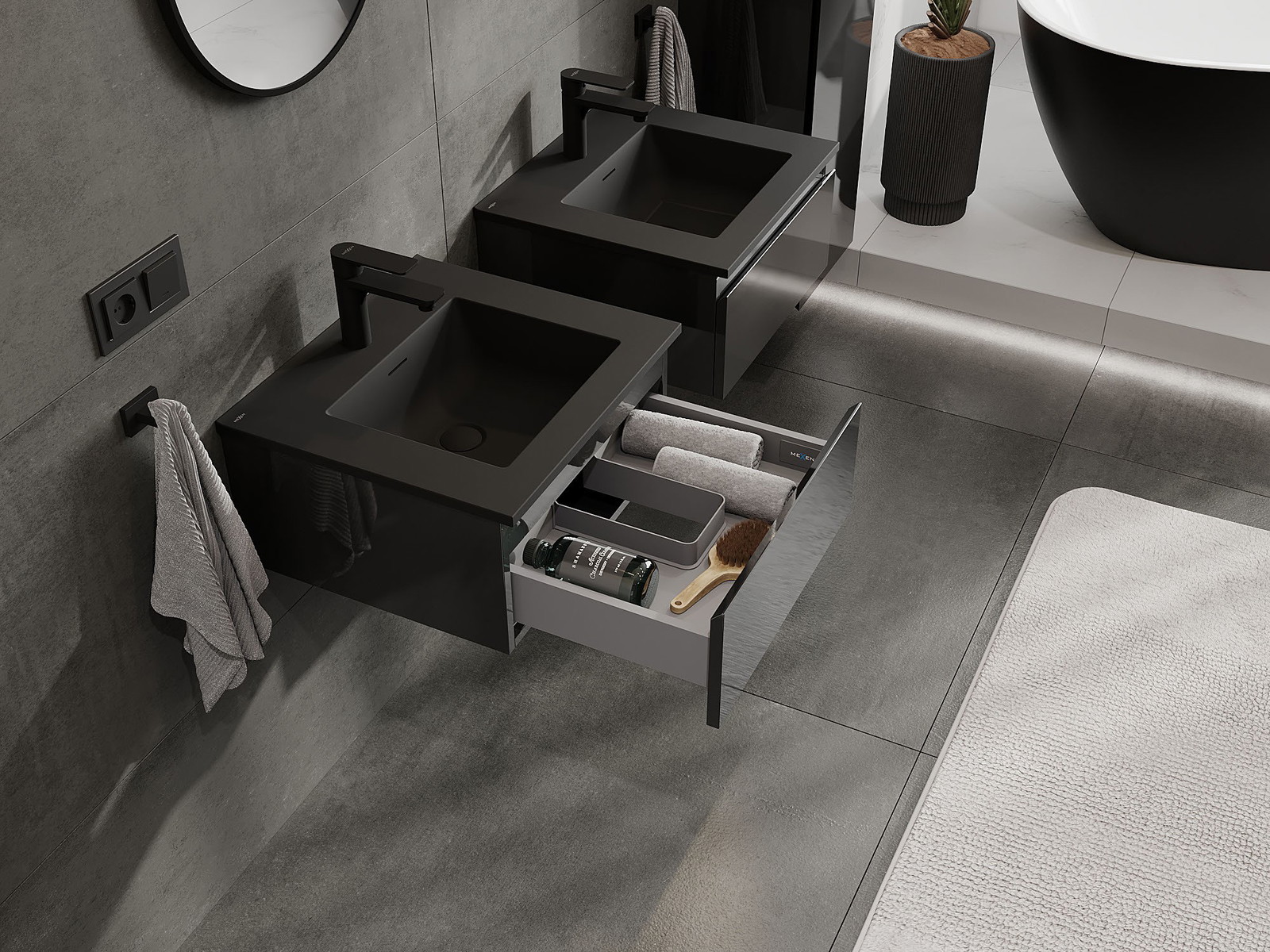 Mexen Orio vonios spintelė 50 cm su kriaukle Otis, 1 stalčius, juodas blizgus/juodas matinis - 91A10-05023-1-BF70-W18M71