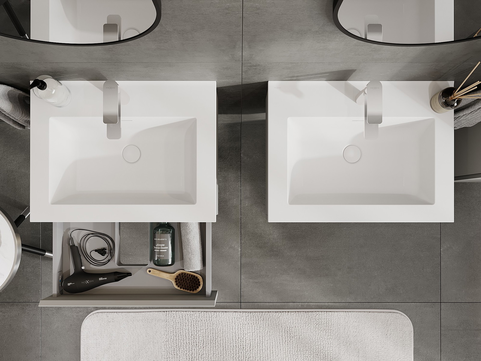 Mexen Orio vonios spintelė 60 cm su kriaukle Otis, 1 stalčius, pilka matinė/balta matinė - 91A10-06023-1-BF62-W18M01