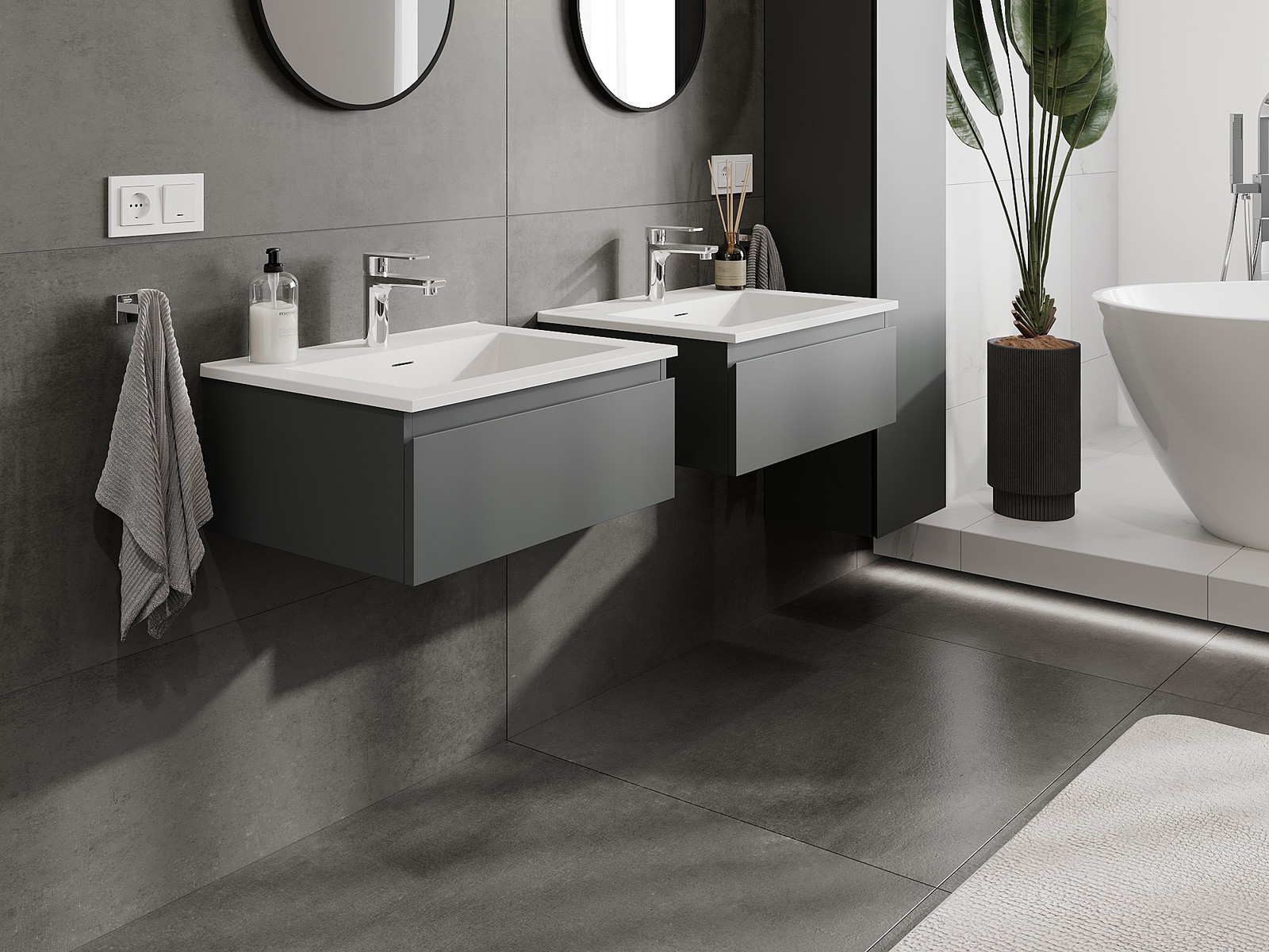 Mexen Orio vonios kambario spintelė 60 cm su Otis kriaukle, 1 stalčius, grafito matinė/balta matinė - 91A10-06023-1-BF66-W18M01