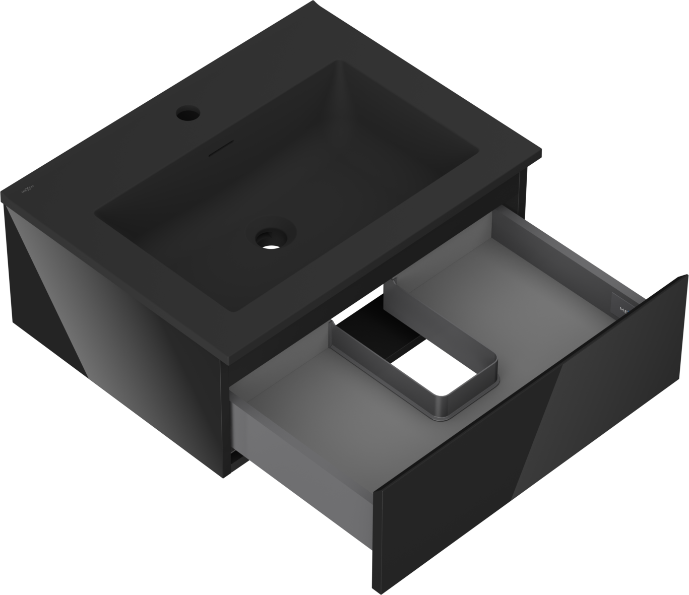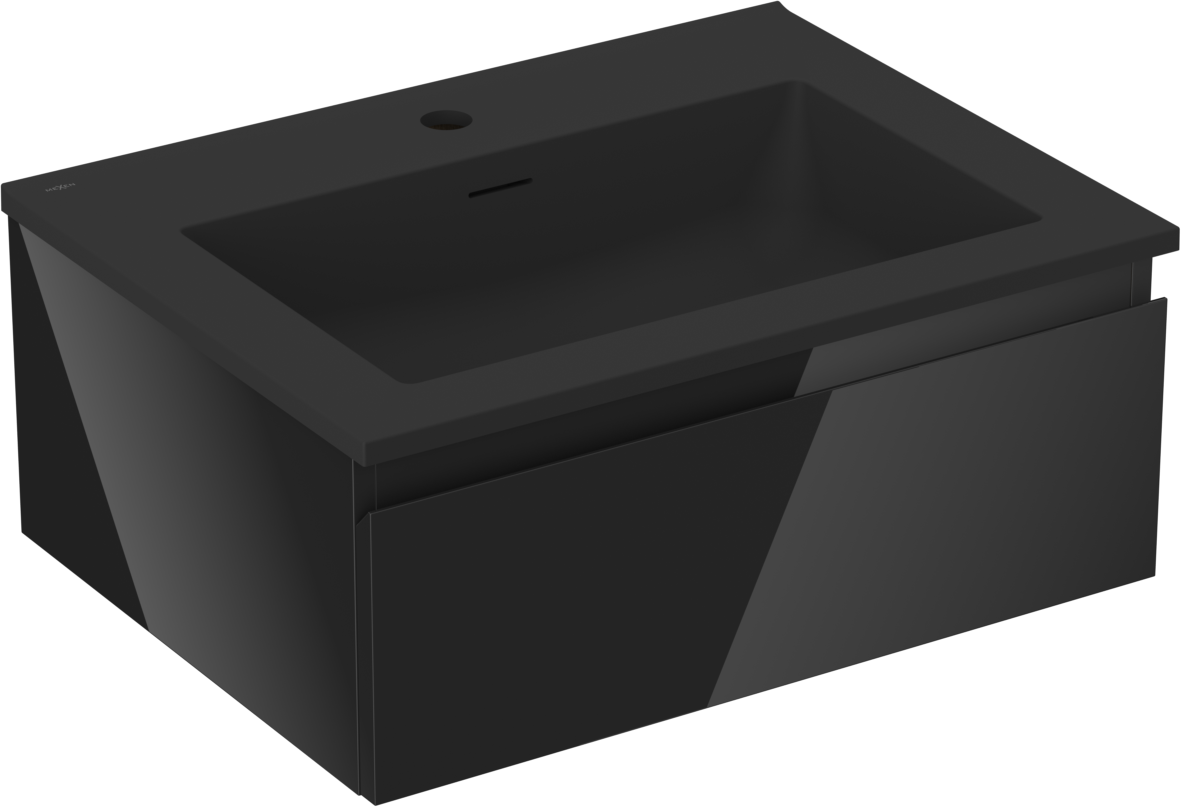 Mexen Orio vonios spintelė 60 cm su praustuvu Otis, 1 stalčius, juodas blizgus/juodas matinis - 91A10-06023-1-BF70-W18M71