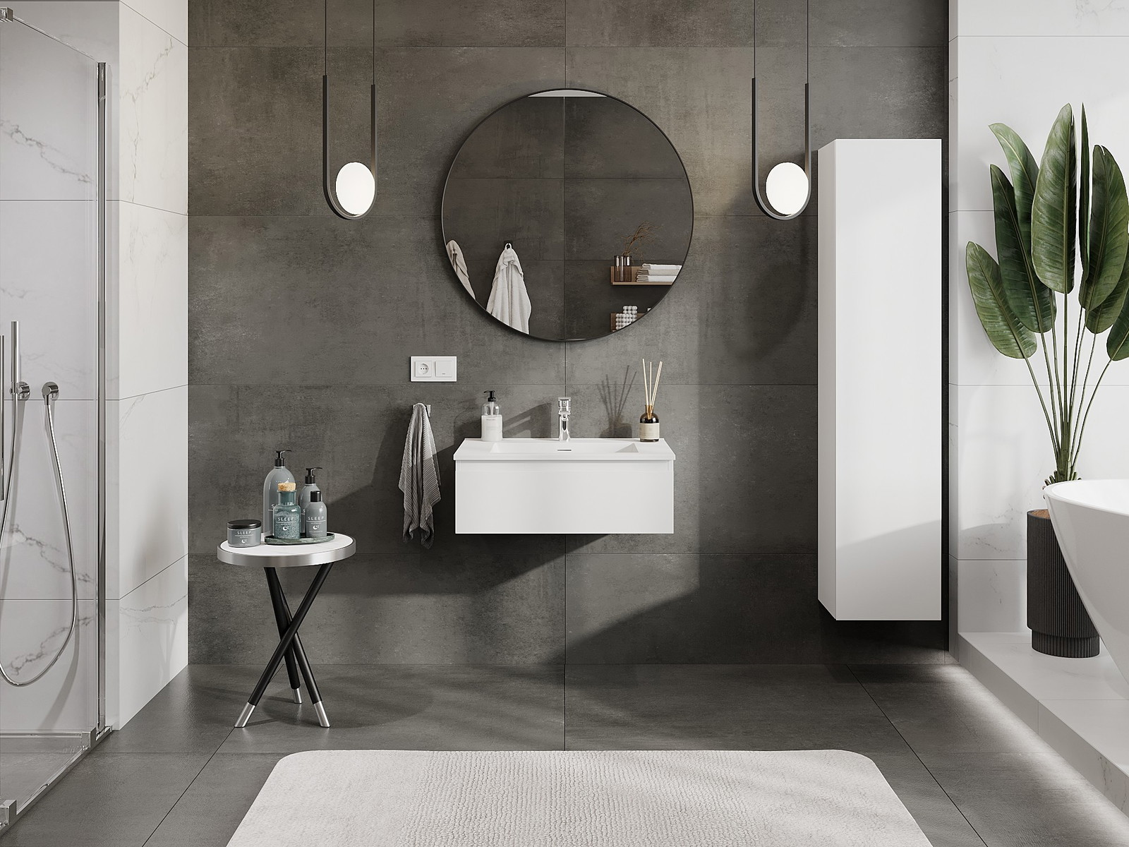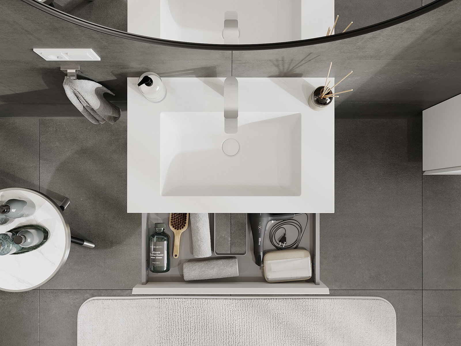 Mūsų moduliniai vonios baldai gali būti derinami tarpusavyje įvairiomis spalvų konfigūracijomis, leidžiant visiškai pritaikyti pagal asmeninius poreikius. Galima pasirinkti tiek atskirų elementų išvaizdą, tiek funkcijas, kas leidžia baldus pritaikyti pagal savo stiliaus ir naudojimo preferencijas.