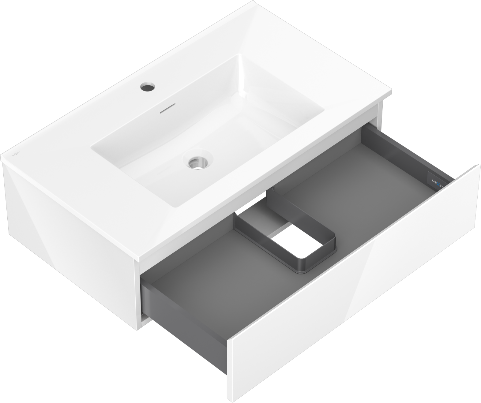 Mexen Orio vonios spintelė 80 cm su Otis praustuvu, 1 stalčius, blizgus baltas - 91A10-08023-1-BF00-W18M00