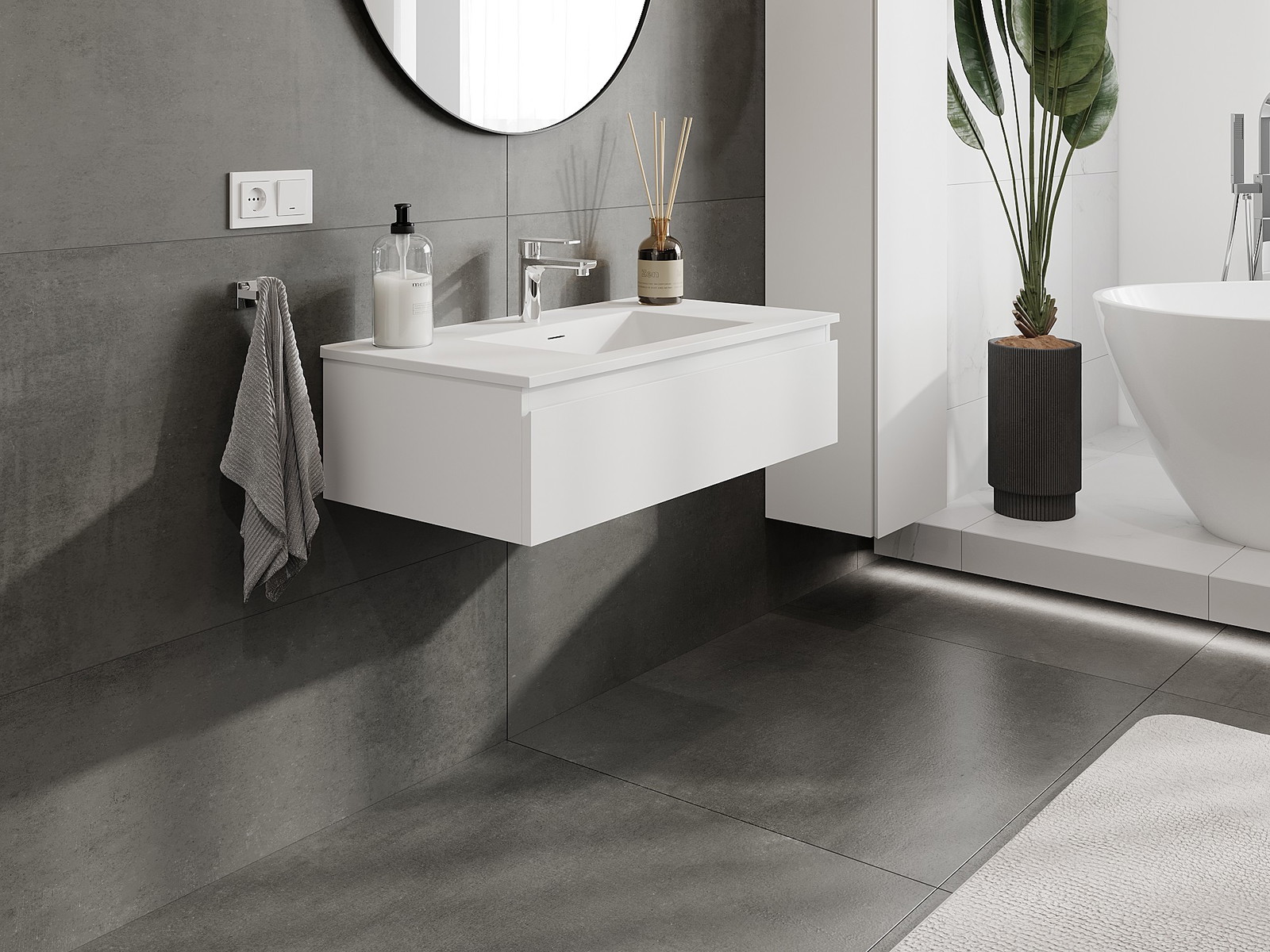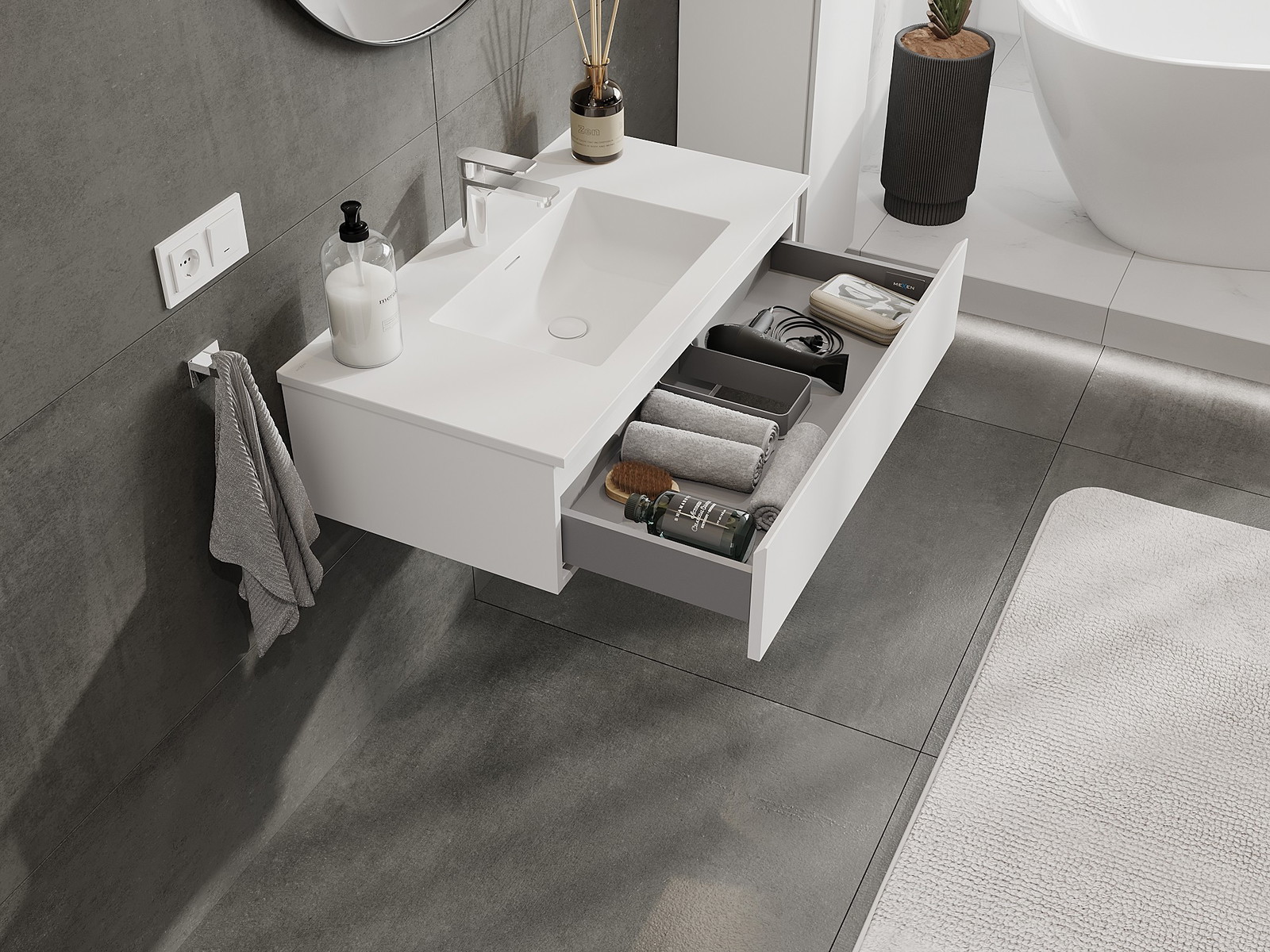 Mexen Orio vonios spintelė 90 cm su Otis praustuvu, 1 stalčius, balta matinė - 91A10-09023-1-BF01-W18M01