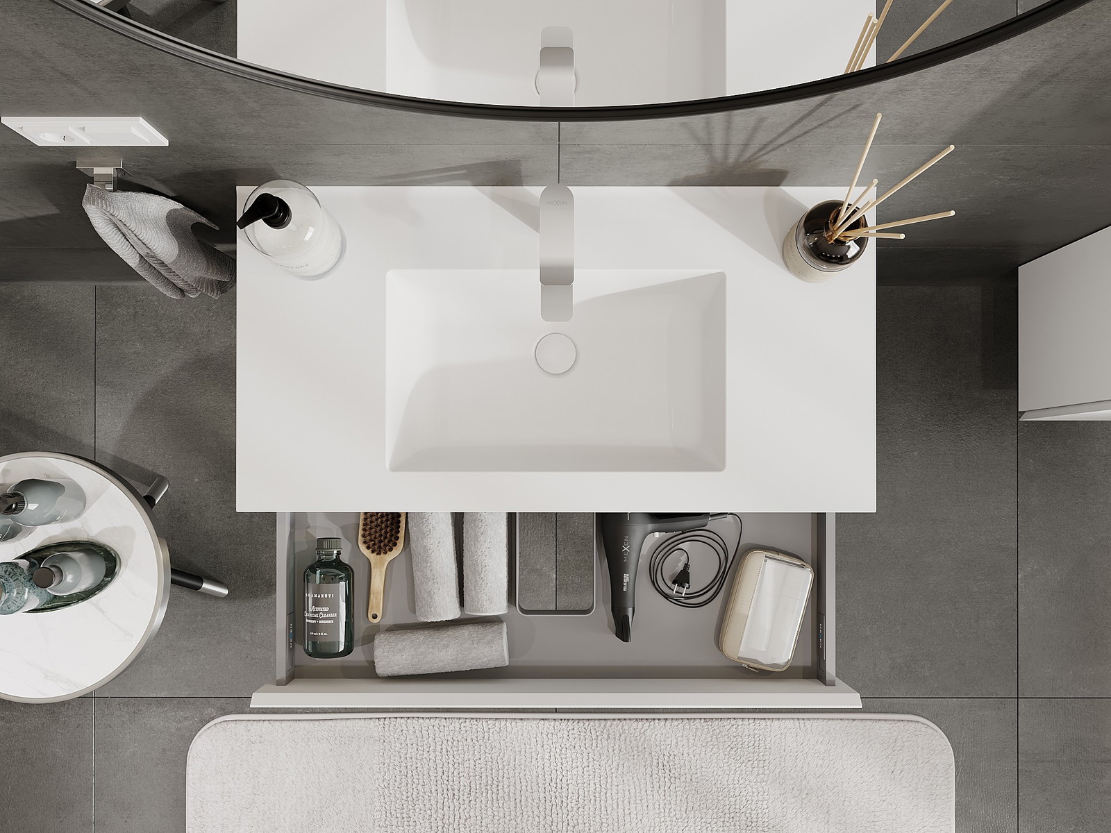 Mūsų moduliniai vonios baldai gali būti derinami tarpusavyje įvairiomis spalvų konfigūracijomis, leidžiant visiškai pritaikyti pagal asmeninius poreikius. Galima pasirinkti tiek atskirų elementų išvaizdą, tiek funkcijas, kas leidžia baldus pritaikyti pagal savo stiliaus ir naudojimo preferencijas.