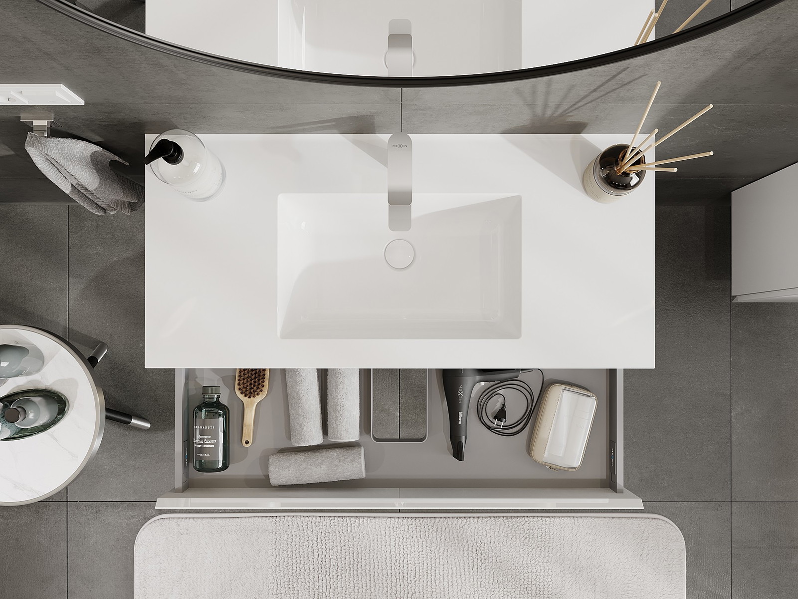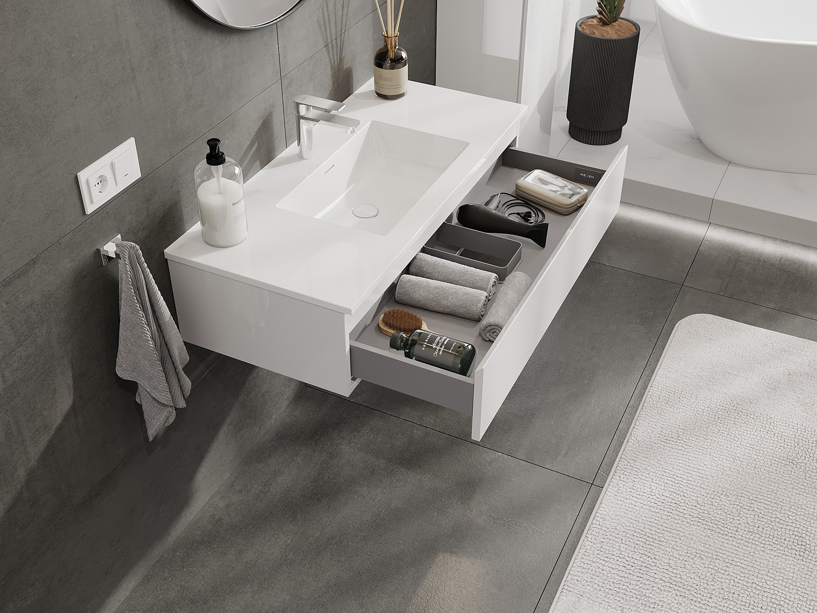 Mexen Orio vonios spintelė 100 cm su Otis kriaukle, 1 stalčius, blizgus baltas - 91A10-10023-1-BF00-W18M00