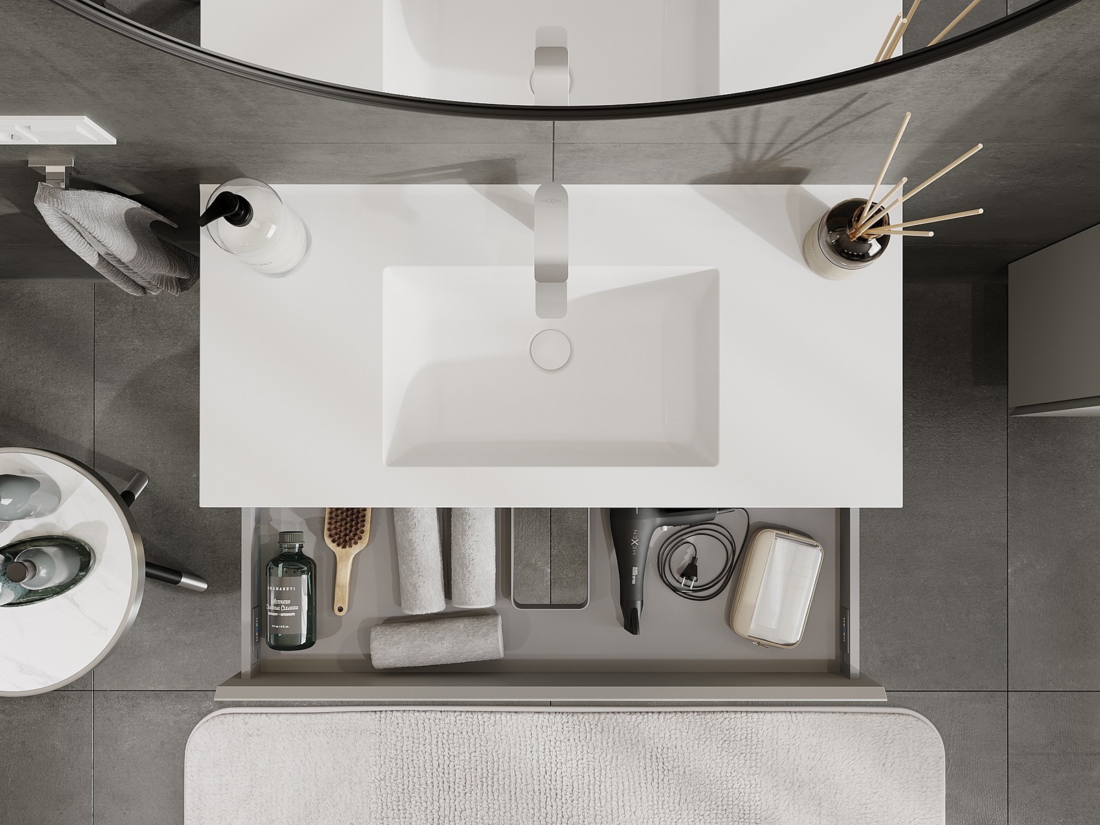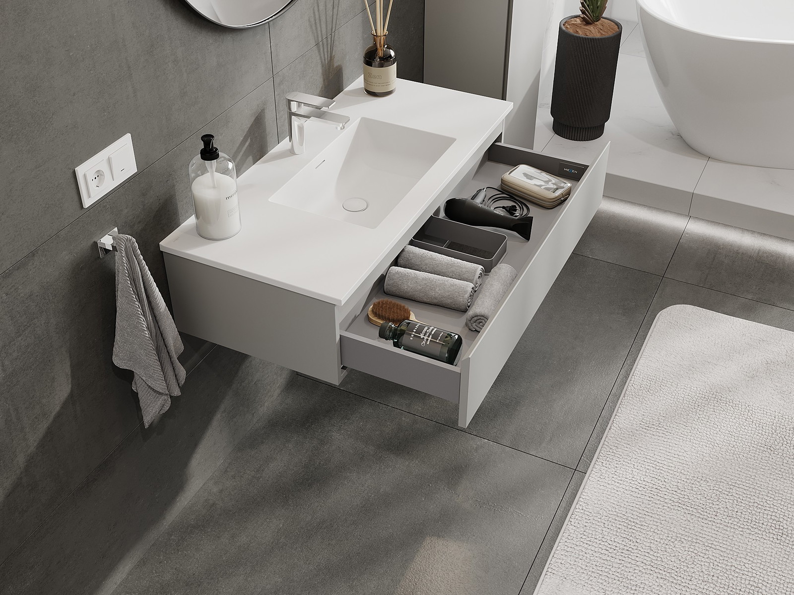 Mexen Orio vonios spintelė 100 cm su praustuvu Otis, 1 stalčius, pilka matinė/balta matinė - 91A10-10023-1-BF62-W18M01