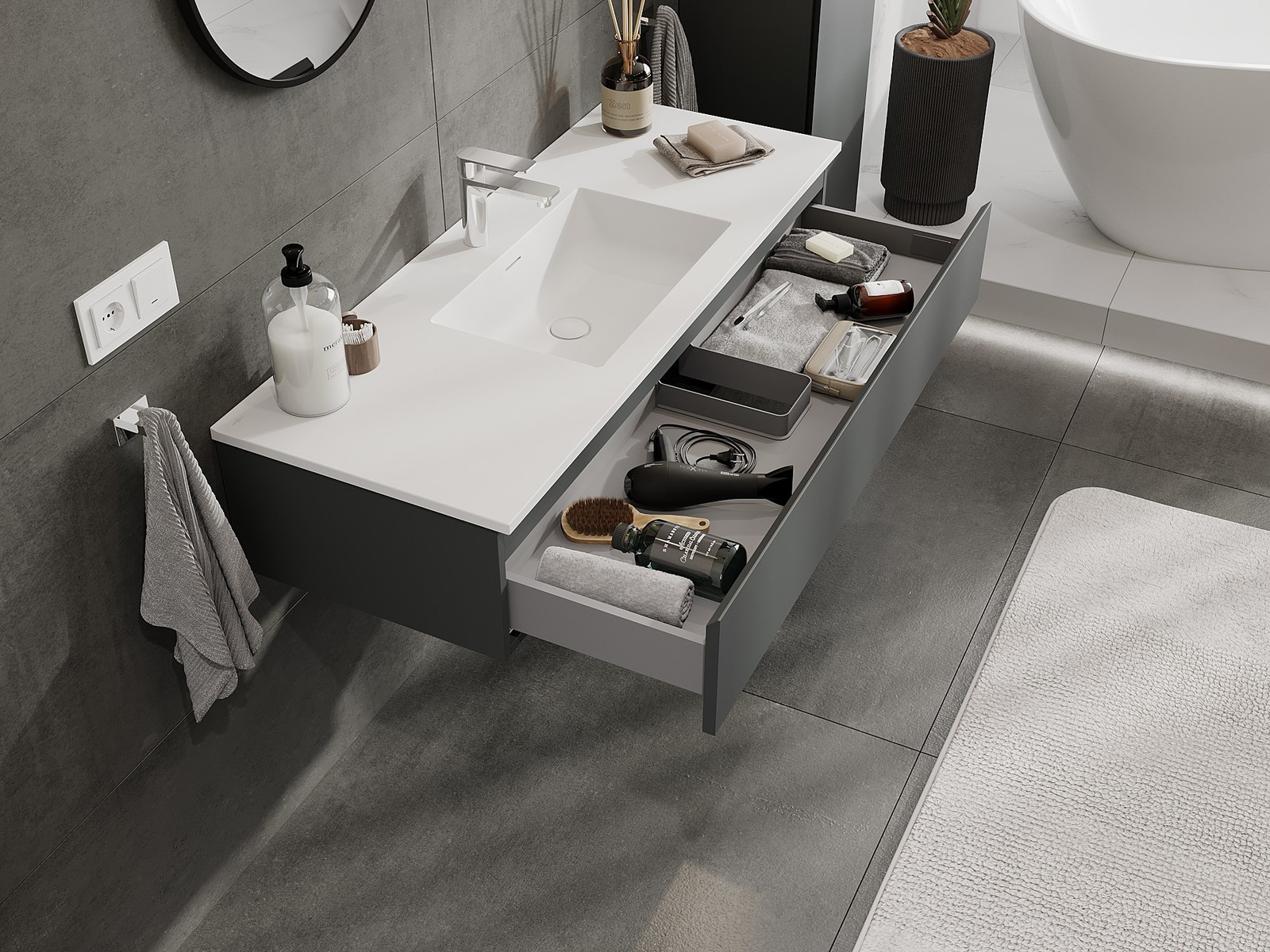 Mexen Orio vonios kambario spintelė 120 cm su Otis praustuvu, 1 stalčius, matinė grafito/balta - 91A10-12023-1-BF66-W18M01