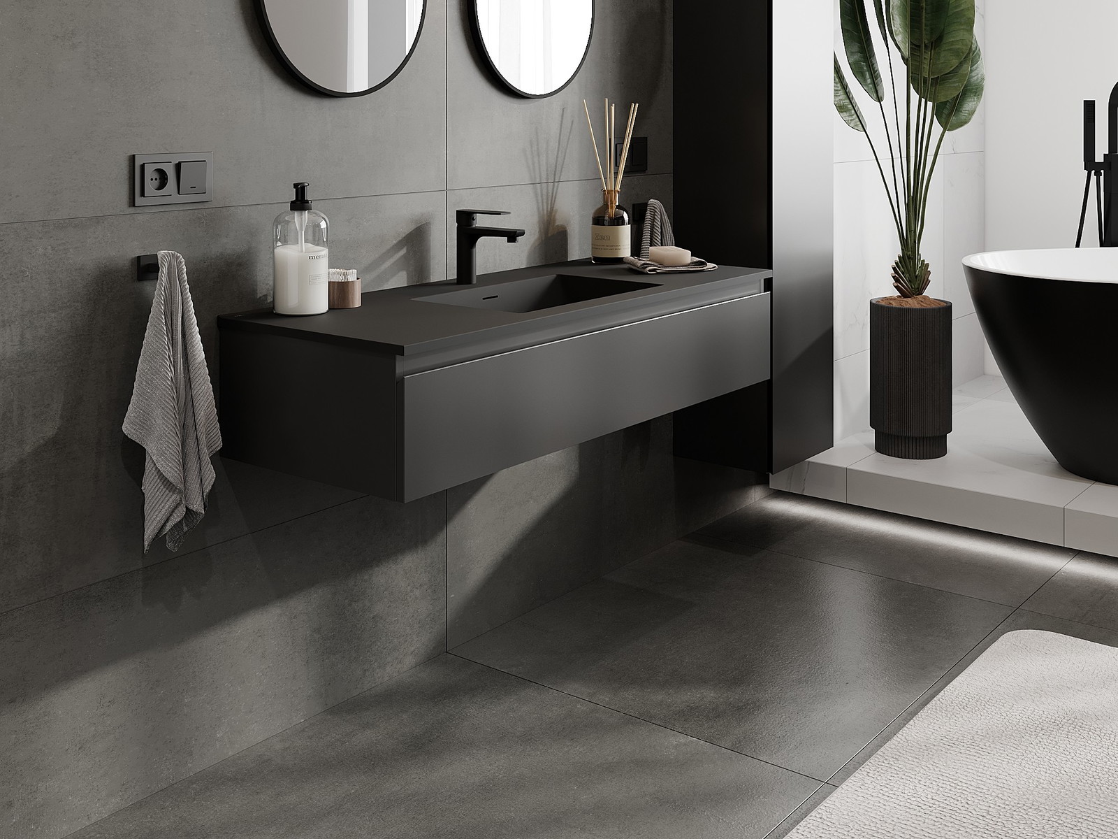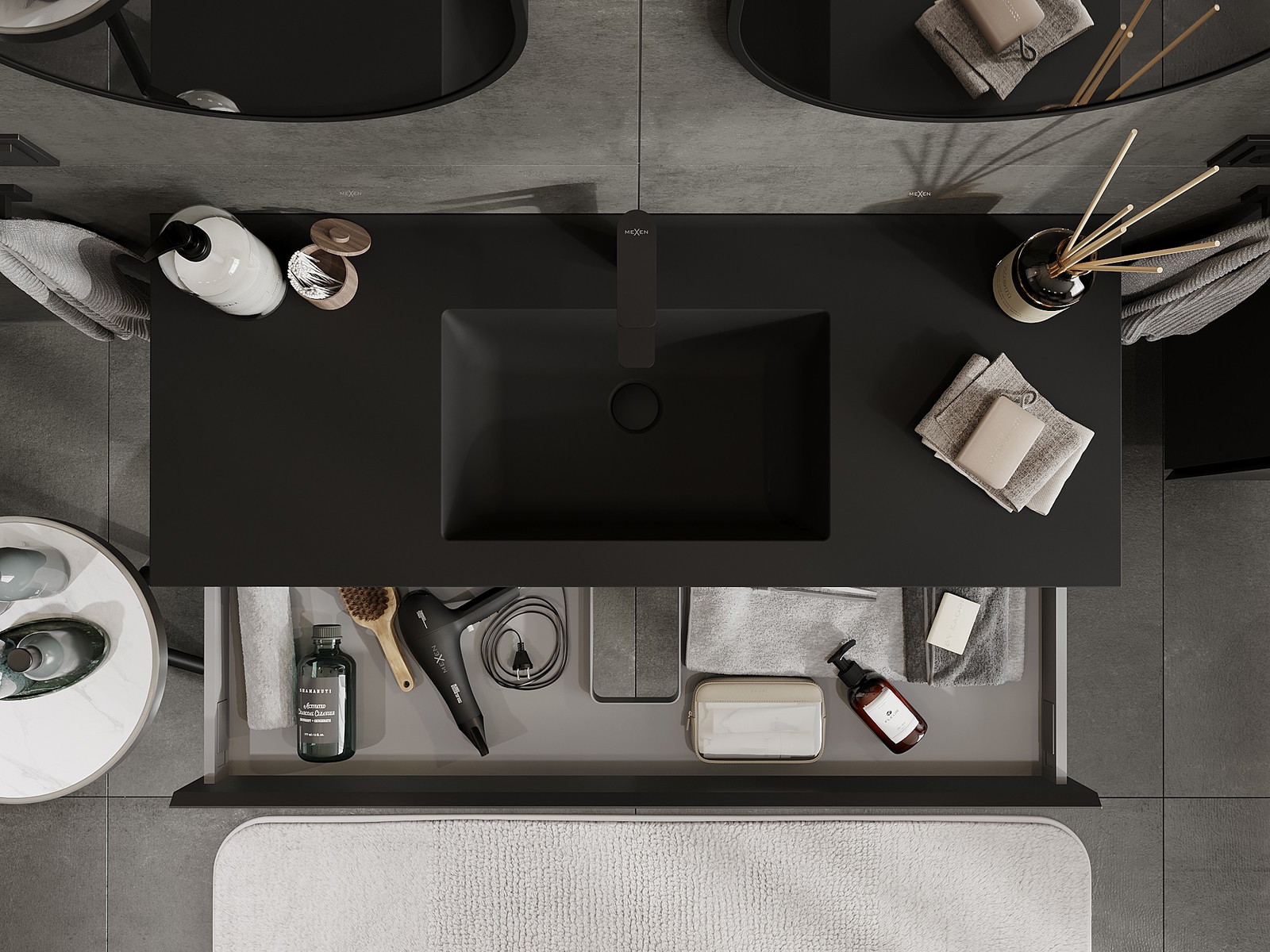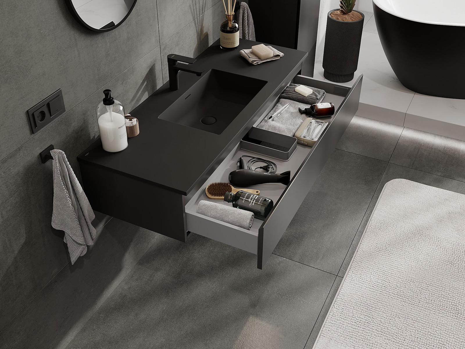 Mexen Orio vonios spintelė 120 cm su Otis praustuvu, 1 stalčius, juodas matinis - 91A10-12023-1-BF71-W18M71