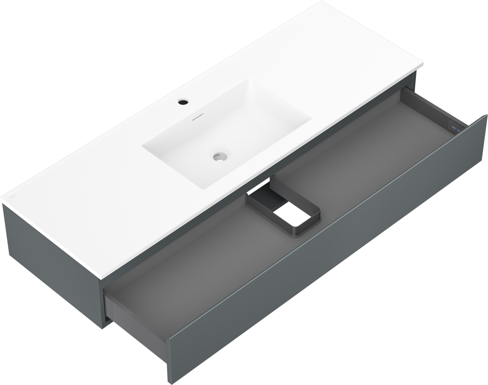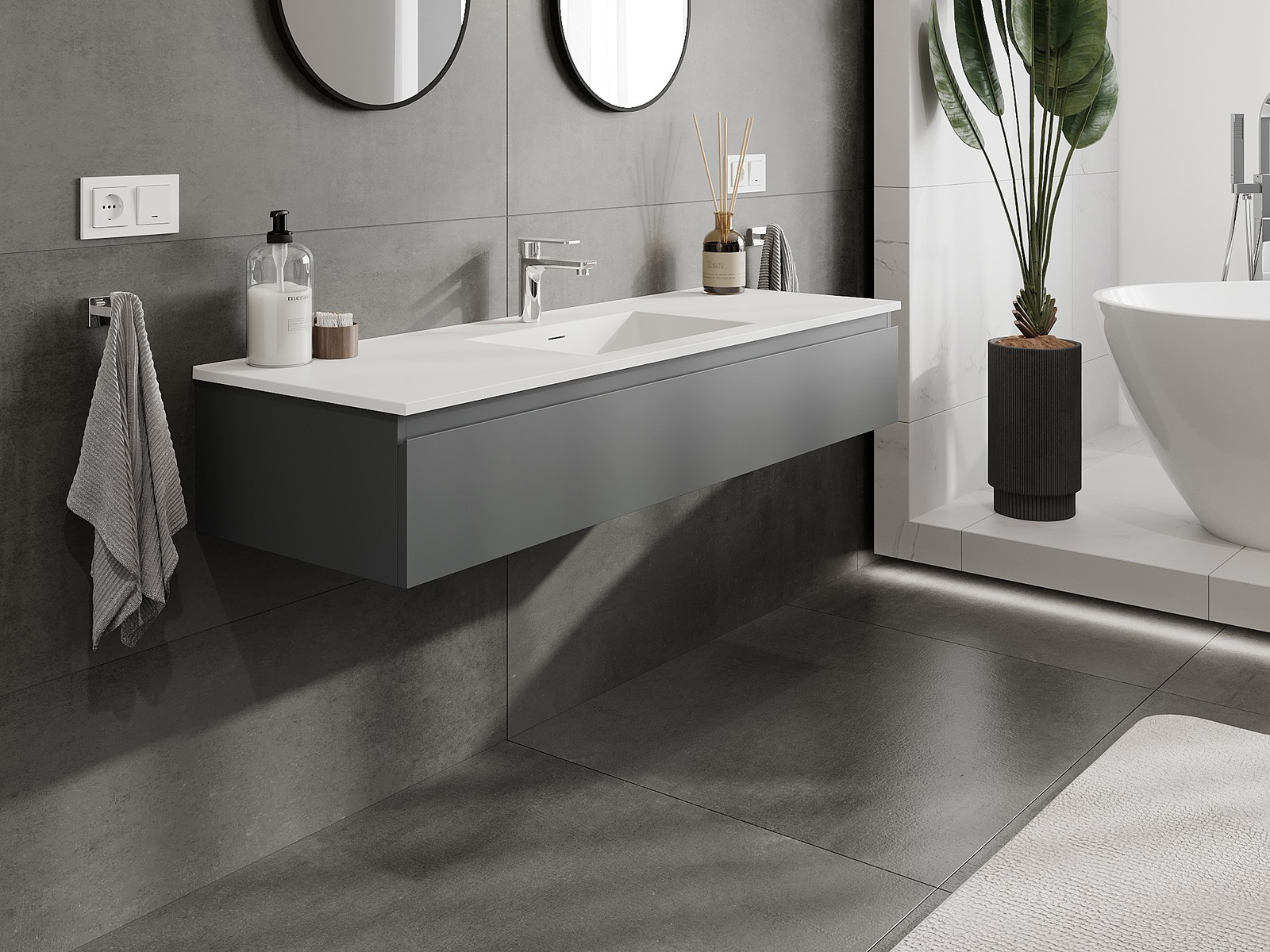Mexen Orio vonios spintelė 140 cm su Otis praustuvu, 1 stalčius, matinė grafito/balta matinė - 91A10-14023-1-BF66-W18M01