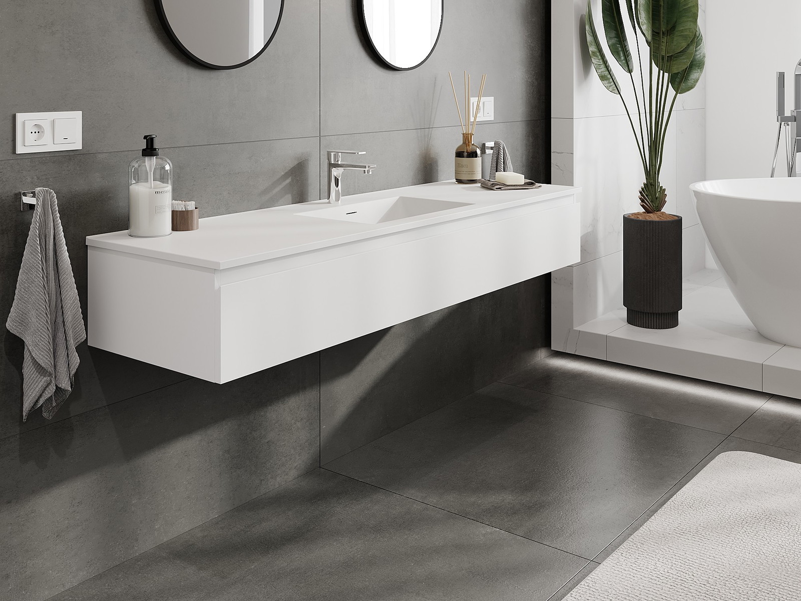 Dėl tvirtų medžiagų, preciziško atlikimo ir šiuolaikinių technologinių sprendimų, produktas užtikrina patogų naudojimą, atsparumą drėgmei ir temperatūros pokyčiams, taip pat elegantišką išvaizdą, kuri tinka įvairiems vonios kambario stiliams.