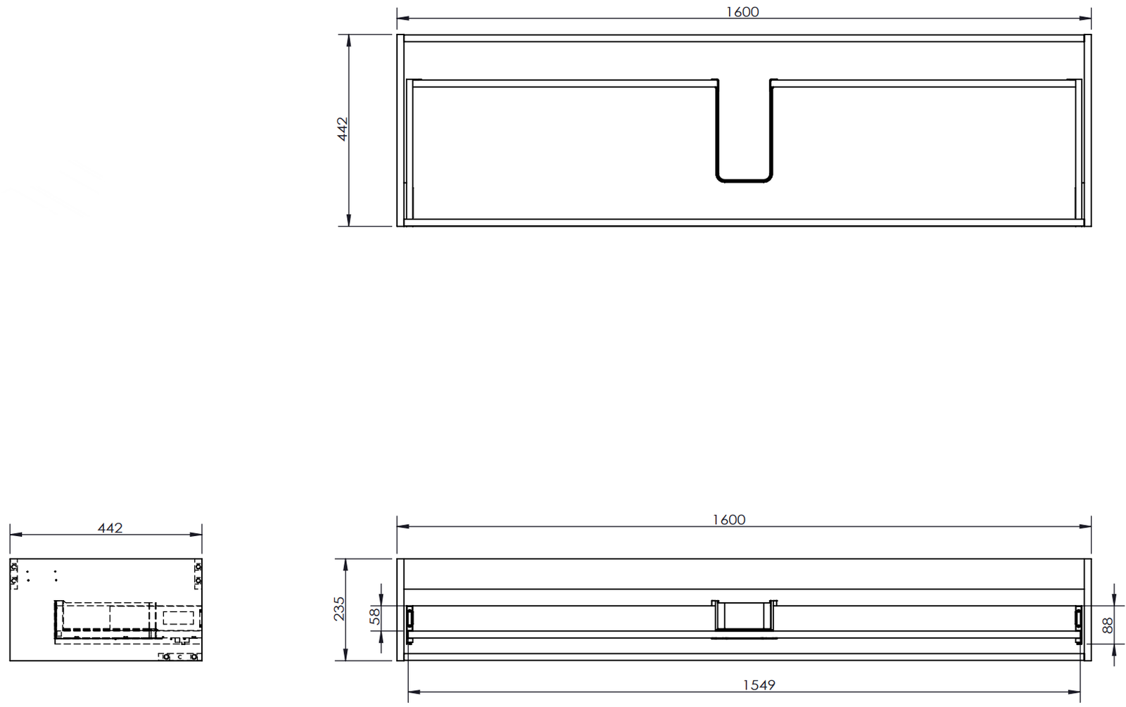 Iškirpimas stalčiuje yra suprojektuotas taip, kad tilptų sifonas, kuris yra būtinas kriauklės įrenginiuose. Dėl to baldas gali būti pilnai funkcionaliai sumontuotas, nereikalaujant atsisakyti vietos stalčiuje dėl įrenginio.