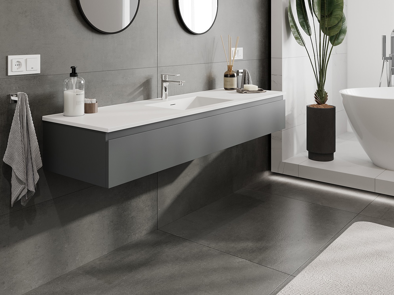 Mexen Orio vonios spintelė 160 cm su Otis kriaukle, 1 stalčius, grafito matinė/balta matinė - 91A10-16023-1-BF66-W18M01