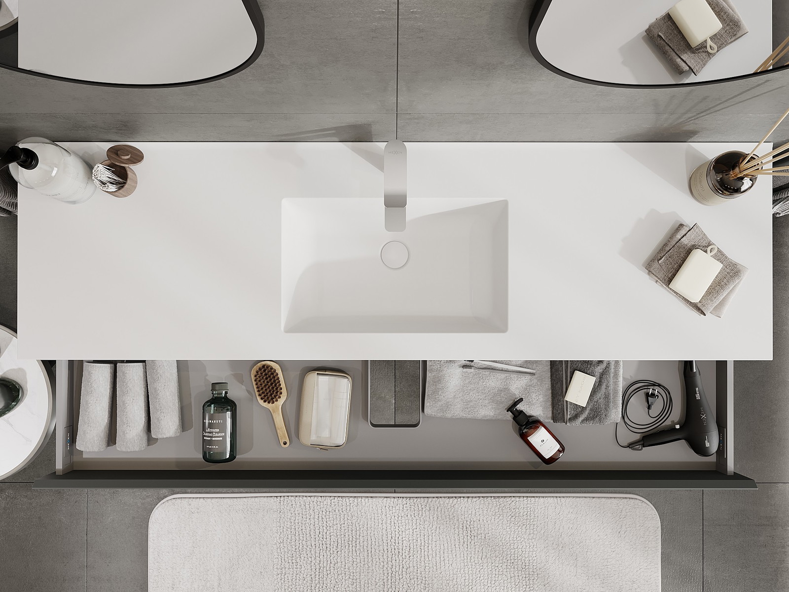 Mūsų moduliniai vonios baldai gali būti derinami tarpusavyje įvairiomis spalvų konfigūracijomis, leidžiant visiškai pritaikyti pagal asmeninius poreikius. Galima pasirinkti tiek atskirų elementų išvaizdą, tiek funkcijas, kas leidžia baldus pritaikyti pagal savo stiliaus ir naudojimo preferencijas.