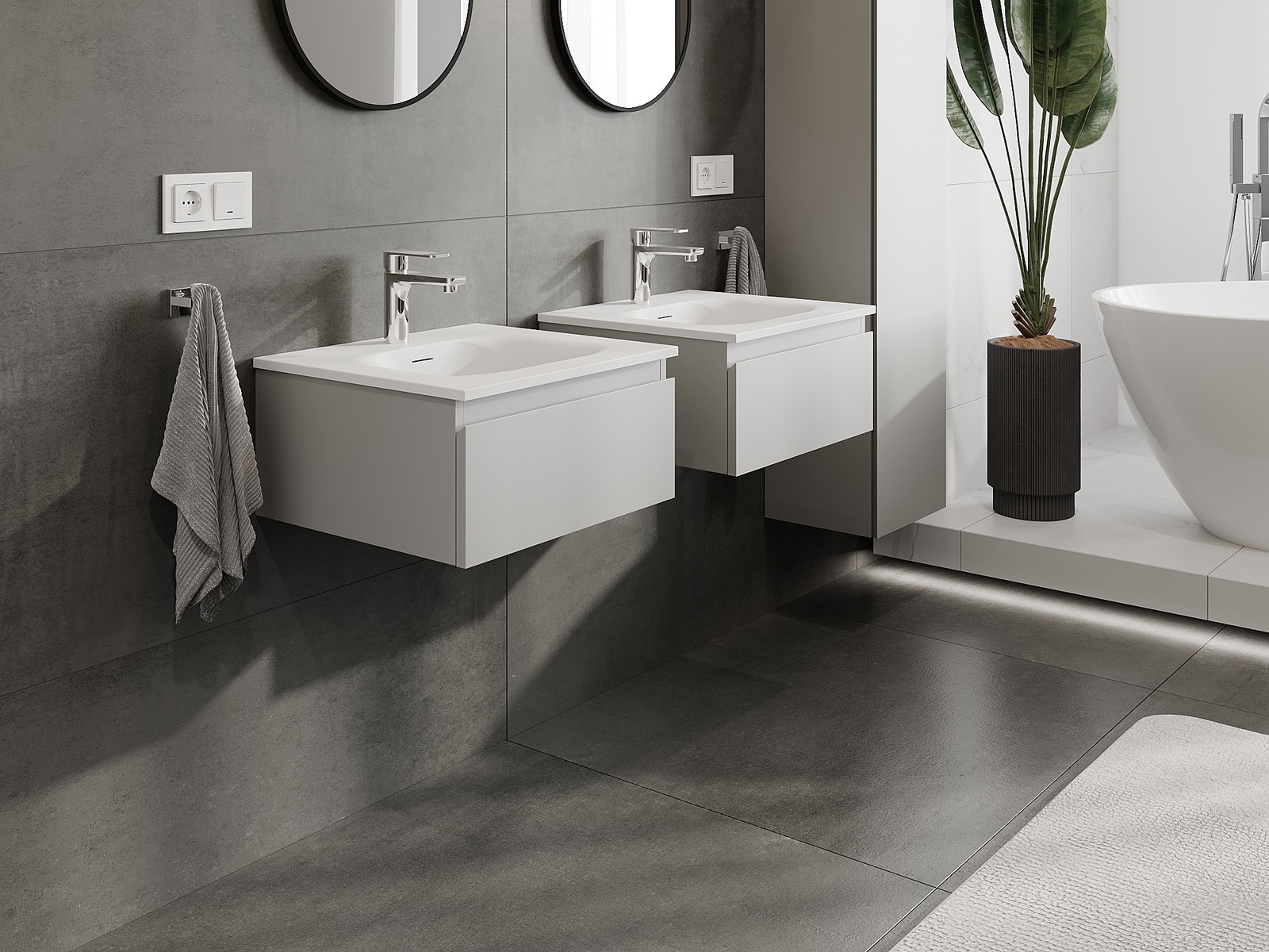 Mūsų moduliniai vonios baldai gali būti derinami tarpusavyje įvairiomis spalvų konfigūracijomis, leidžiant visiškai pritaikyti pagal asmeninius poreikius. Galima pasirinkti tiek atskirų elementų išvaizdą, tiek funkcijas, kas leidžia baldus pritaikyti pagal savo stiliaus ir naudojimo preferencijas.