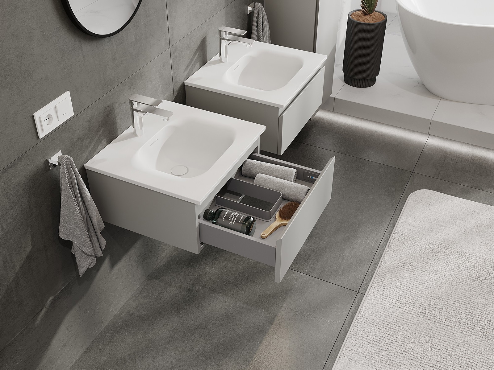 Mexen Orio vonios spintelė 50 cm su kriaukle Vela, 1 stalčius, pilka matinė/balta matinė - 91A10-05023-1-BF62-W23M01