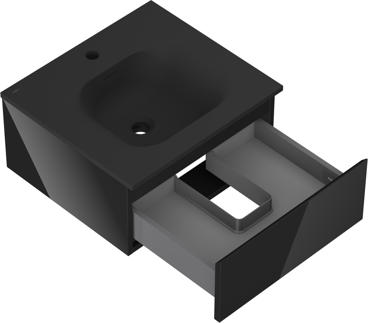 Mexen Orio vonios spintelė 50 cm su praustuvu Vela, 1 stalčius, juodas blizgesys/juodas matinis - 91A10-05023-1-BF70-W23M71