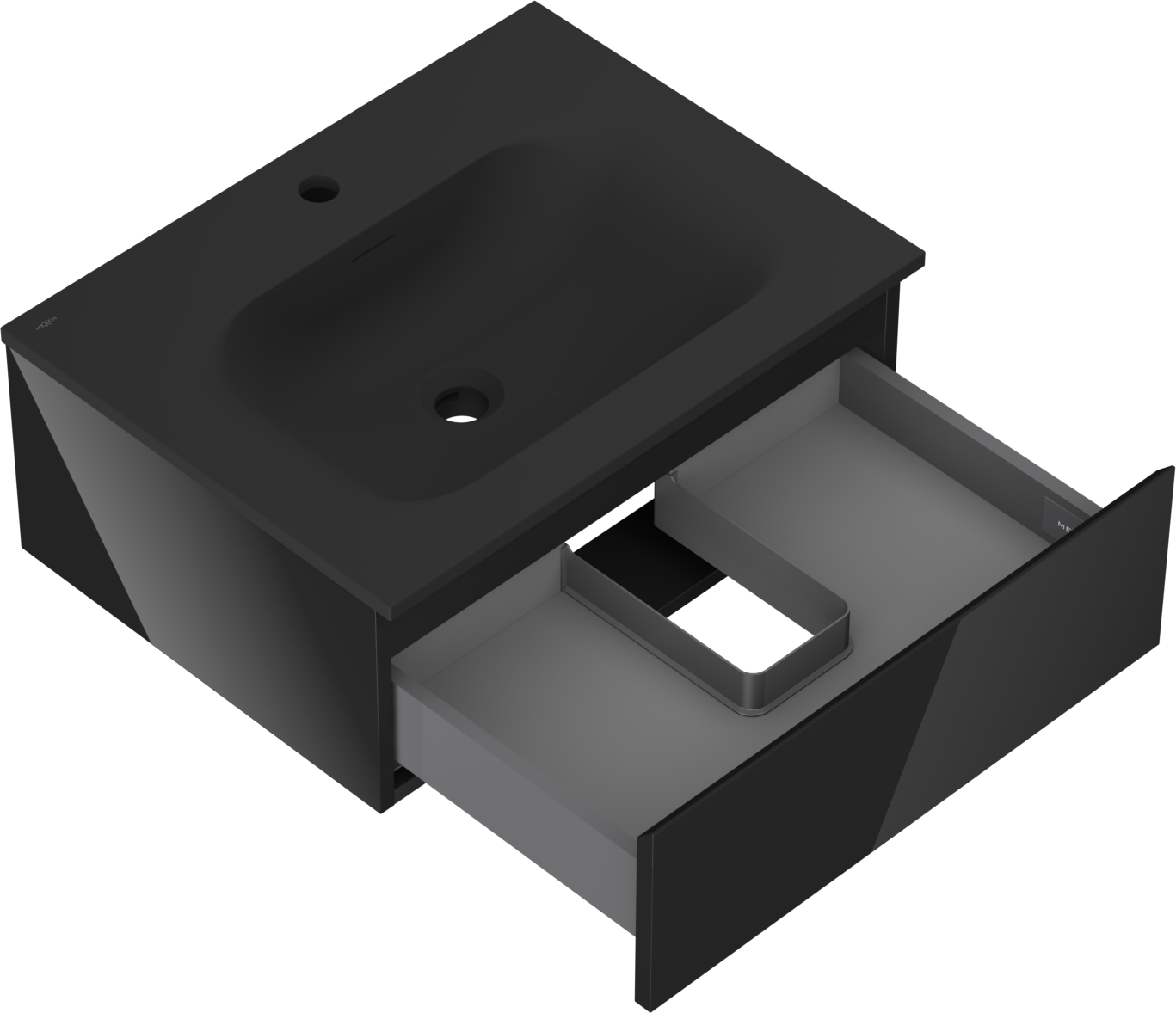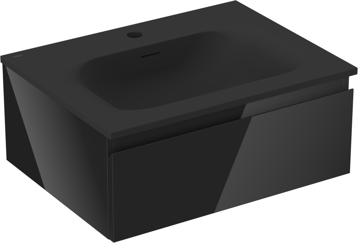 Mexen Orio vonios spintelė 60 cm su kriaukle Vela, 1 stalčius, juodas blizgus/juodas matinis - 91A10-06023-1-BF70-W23M71
