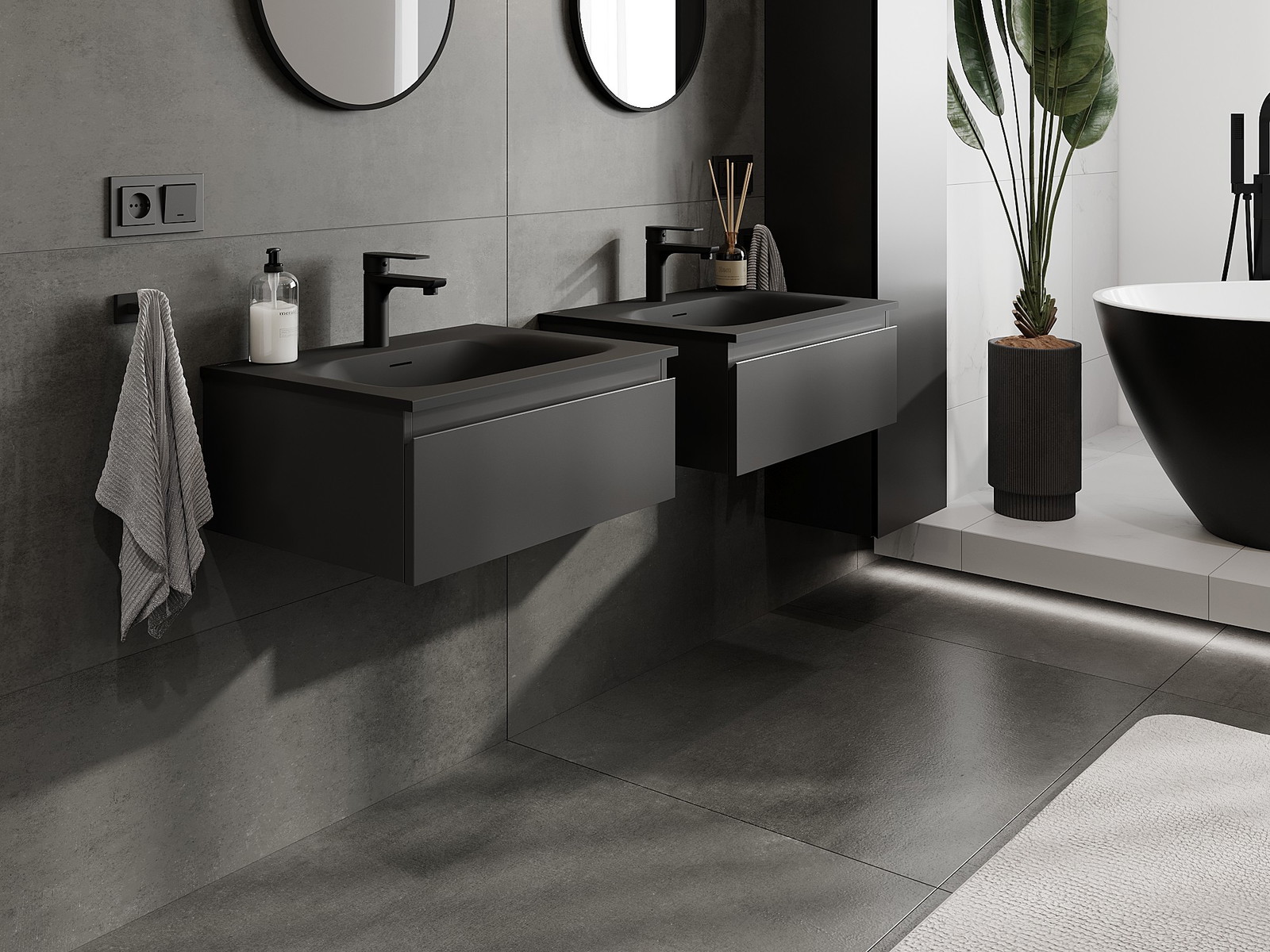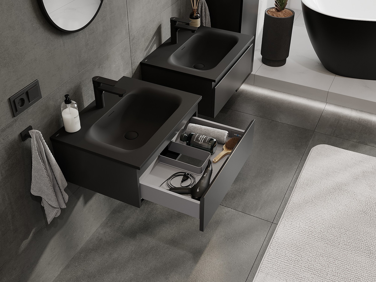 Mexen Orio vonios spintelė 60 cm su kriaukle Vela, 1 stalčius, juoda matinė - 91A10-06023-1-BF71-W23M71