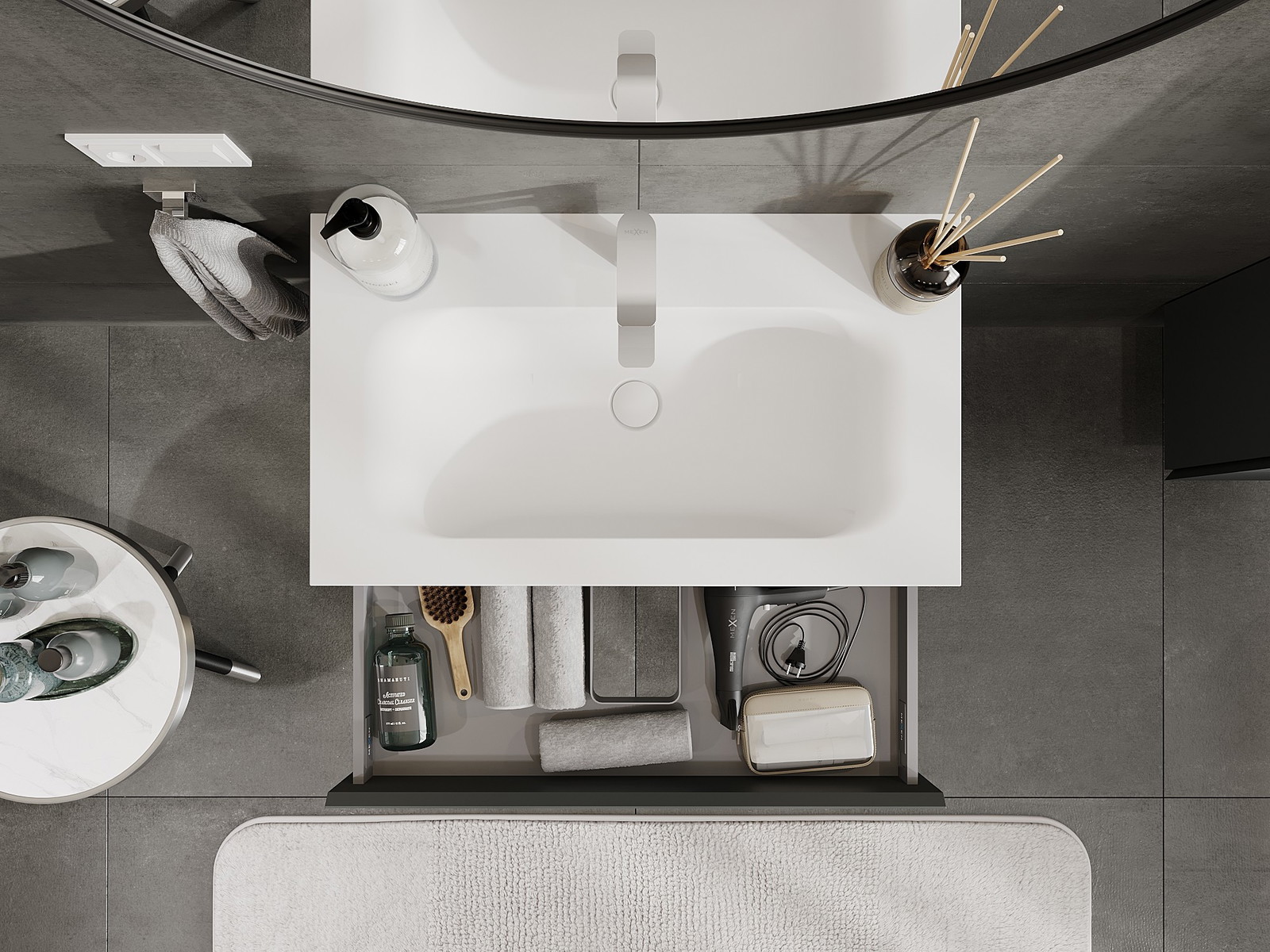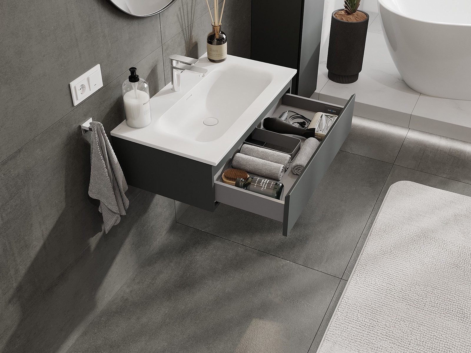 Mexen Orio vonios spintelė 80 cm su praustuvu Vela, 1 stalčius, matinė grafito/balta - 91A10-08023-1-BF66-W23M01