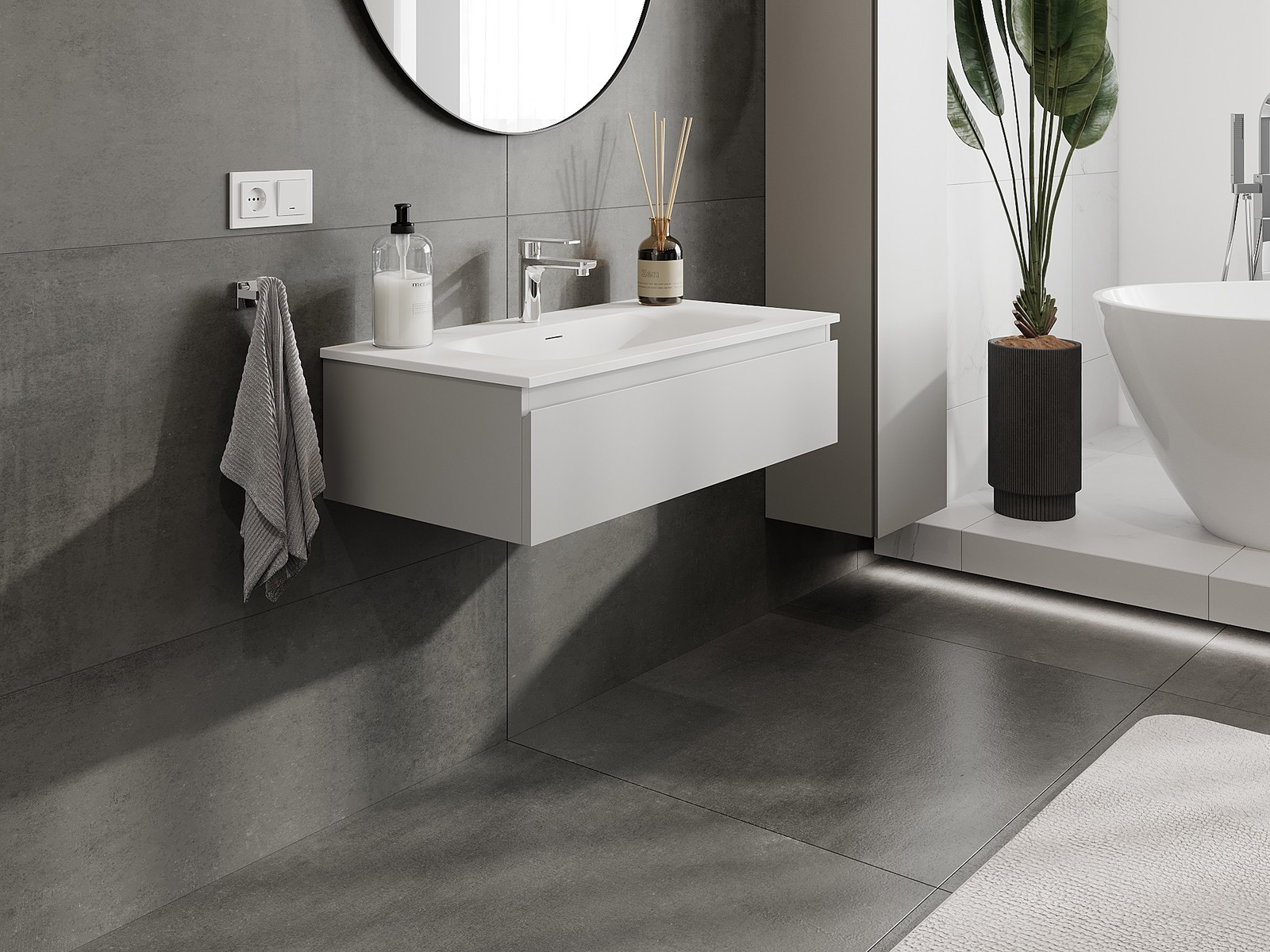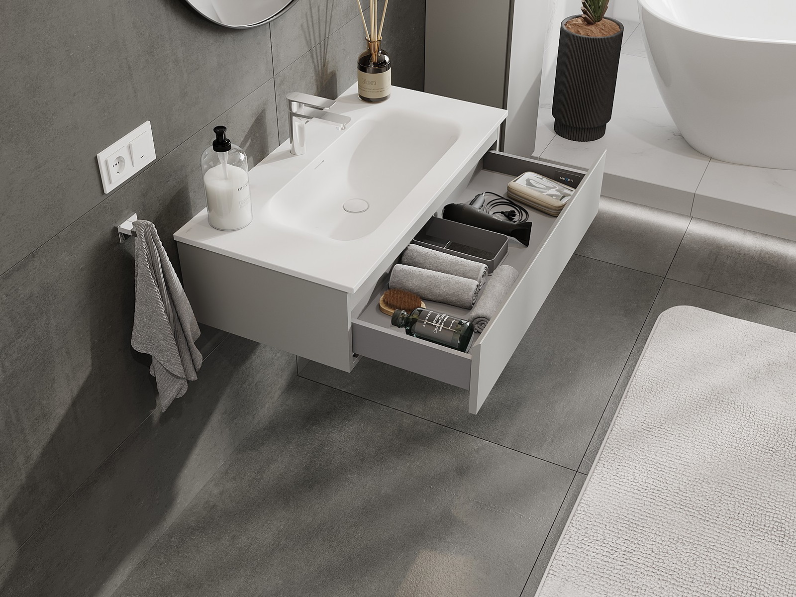Mexen Orio vonios spintelė 90 cm su praustuvu Vela, 1 stalčius, pilka matinė/balta matinė - 91A10-09023-1-BF62-W23M01