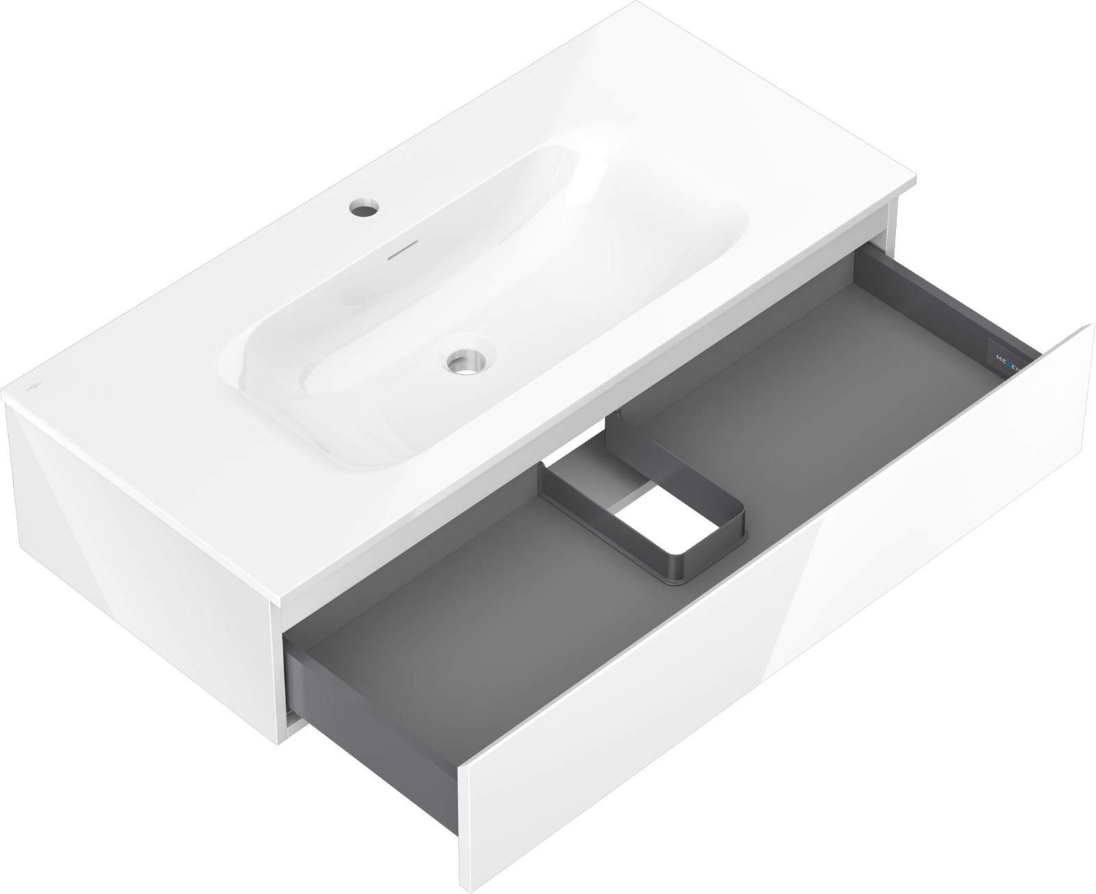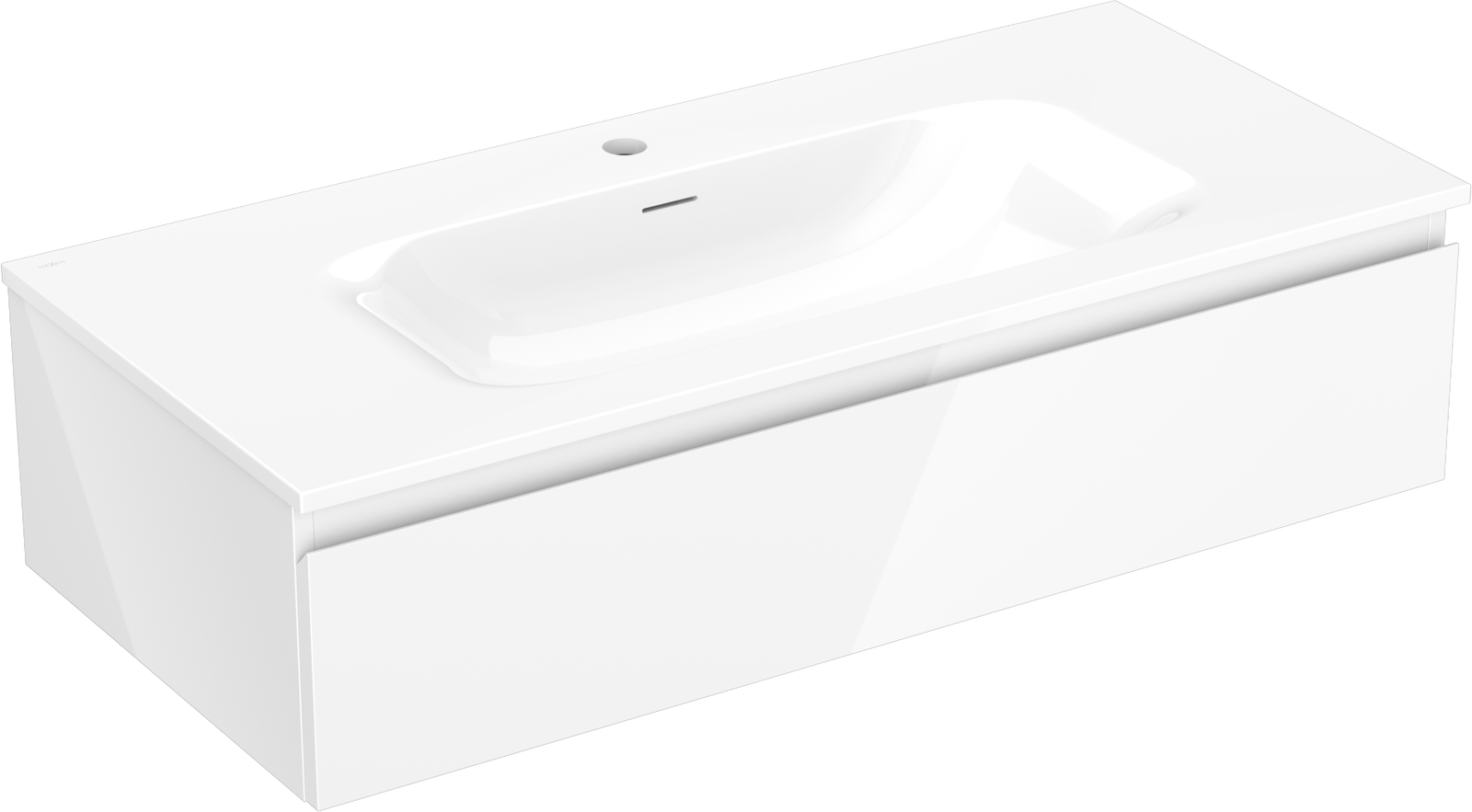 Mexen Orio vonios spintelė 100 cm su praustuvu Vela, 1 stalčius, blizgi balta - 91A10-10023-1-BF00-W23M00