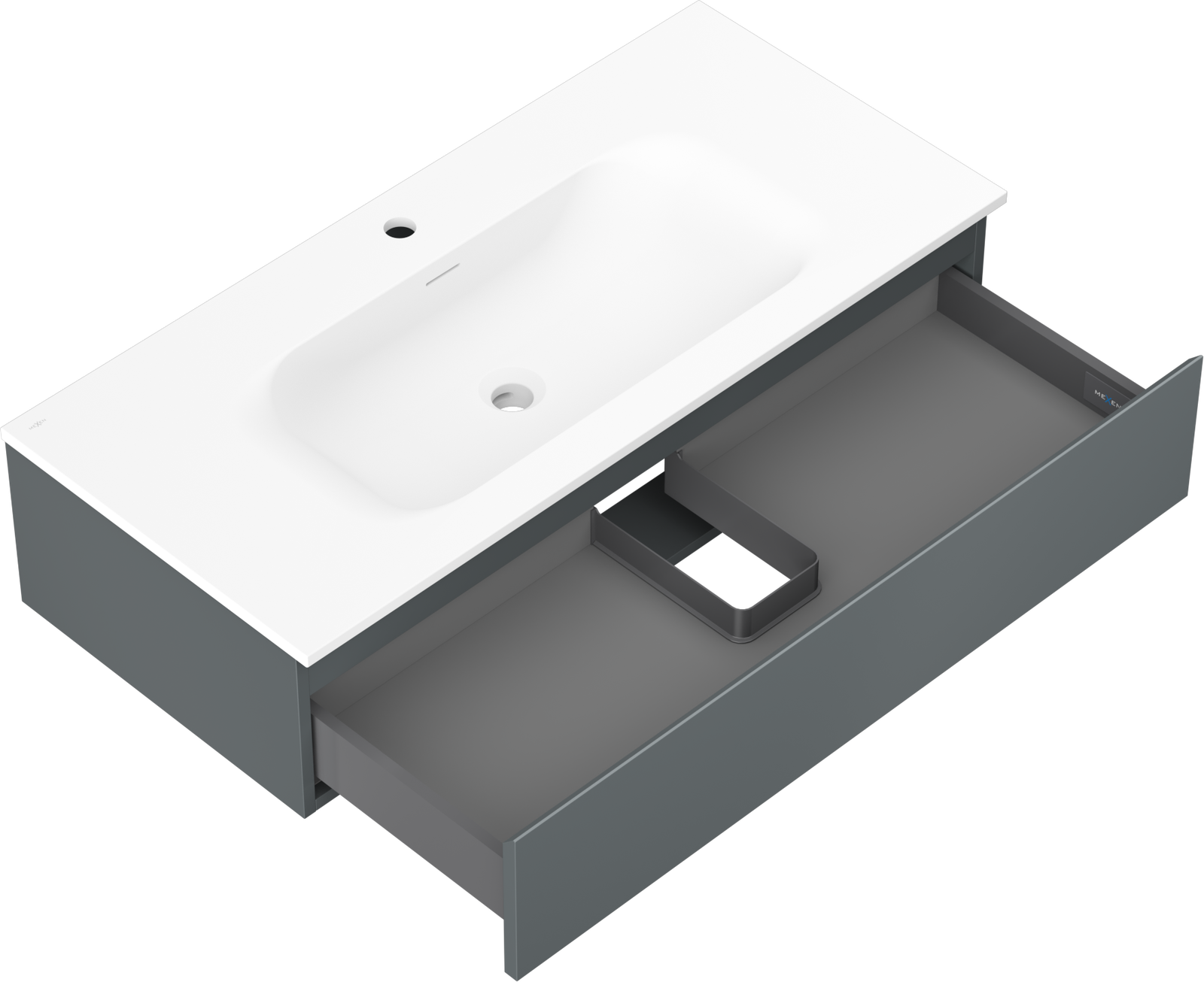 Mexen Orio vonios spintelė 100 cm su Velos kriaukle, 1 stalčius, matinė grafito/balta matinė - 91A10-10023-1-BF66-W23M01
