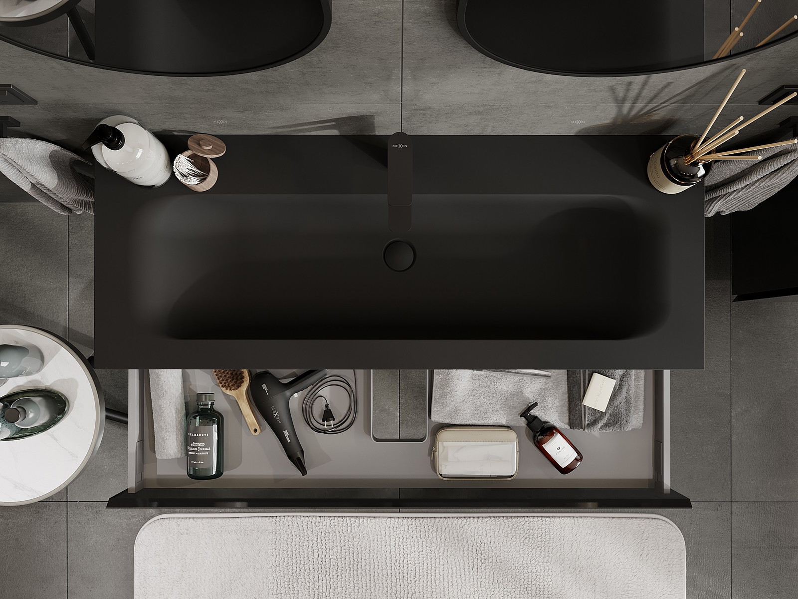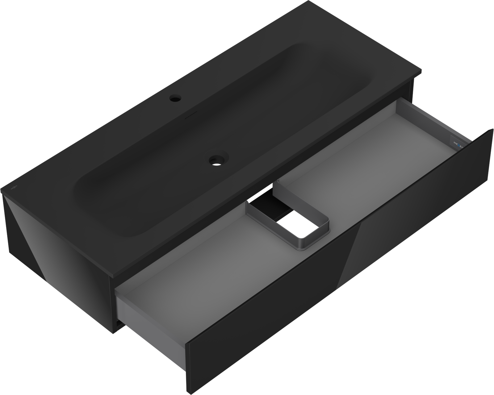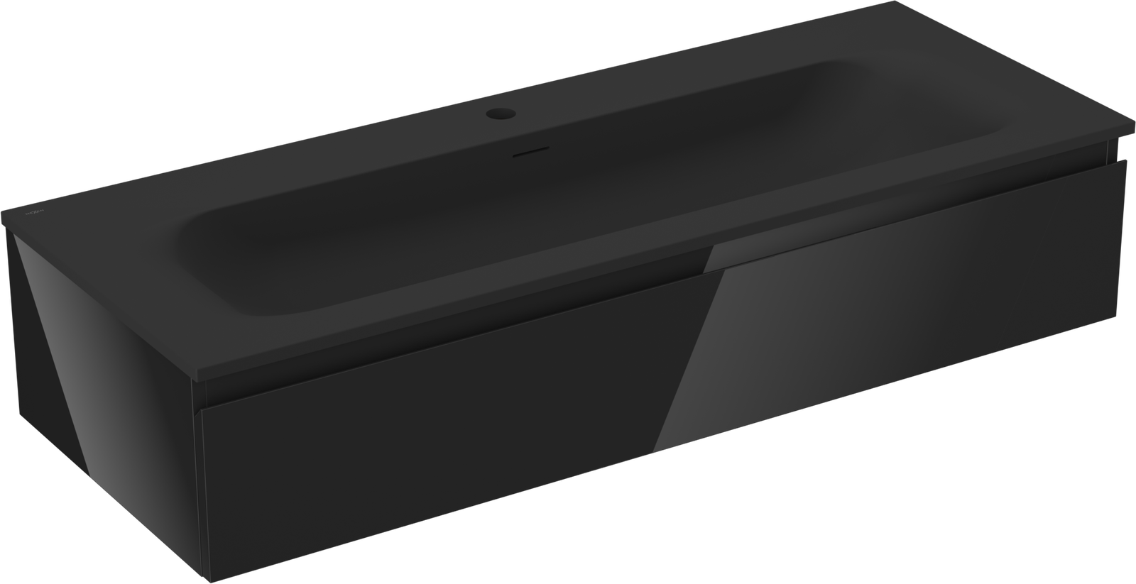 Mexen Orio vonios kambario spintelė 120 cm su Vela praustuvu, 1 stalčius, juoda blizgi/juoda matinė - 91A10-12023-1-BF70-W23M71