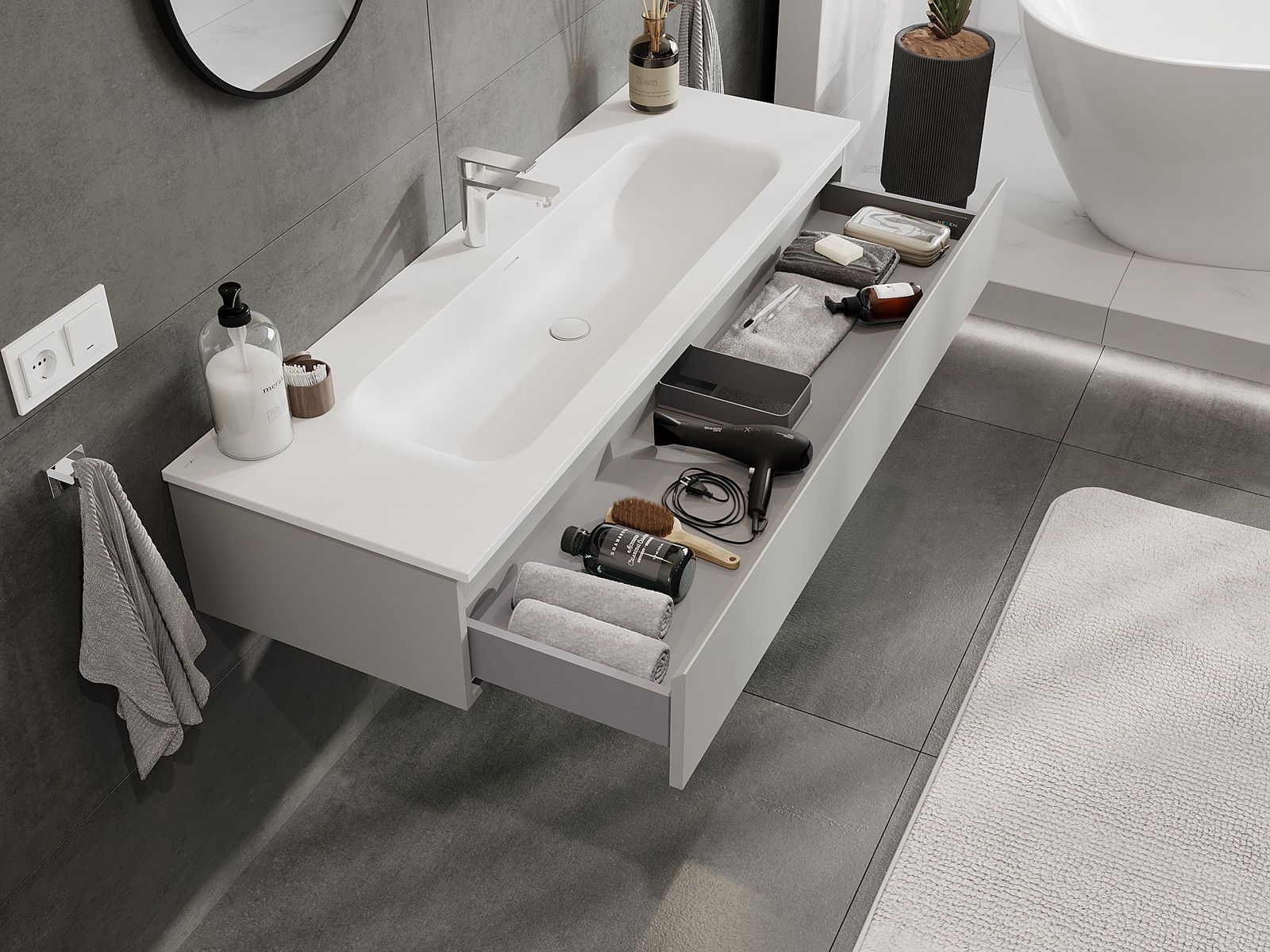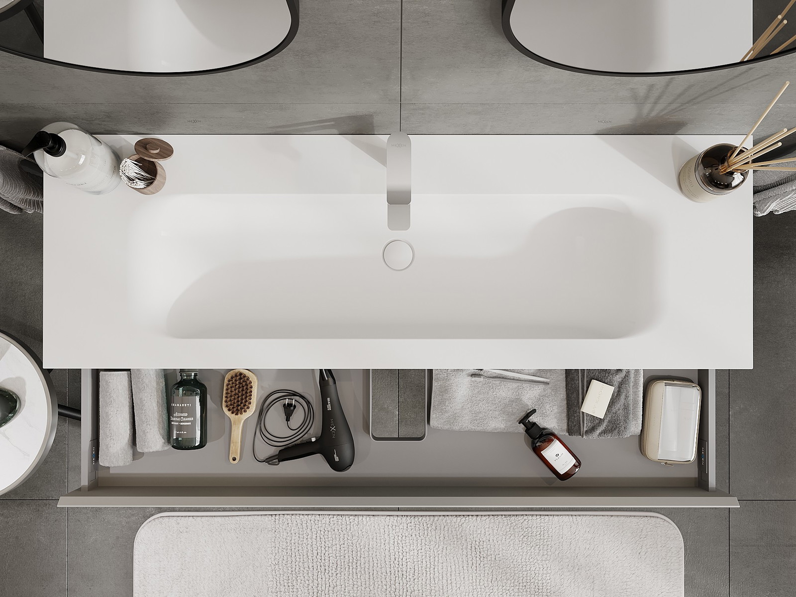 Mexen Orio vonios spintelė 140 cm su kriaukle Vela, 1 stalčius, pilka matinė/balta matinė - 91A10-14023-1-BF62-W23M01